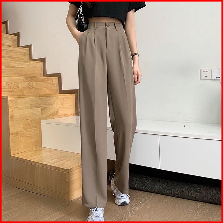 Gdtima Loose Pants Celana Kulot Wanita Pants Highwaist Casual Trousers Wide Leg Celana Kantor