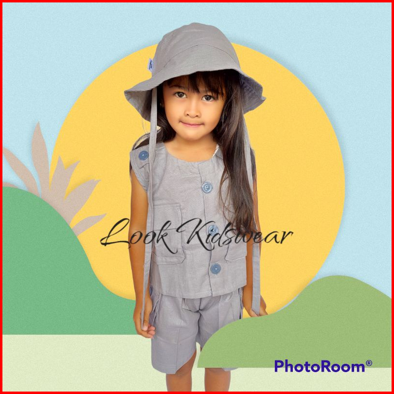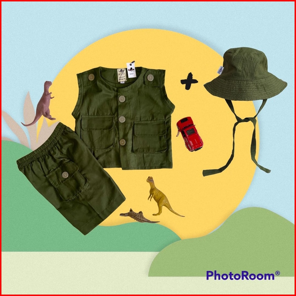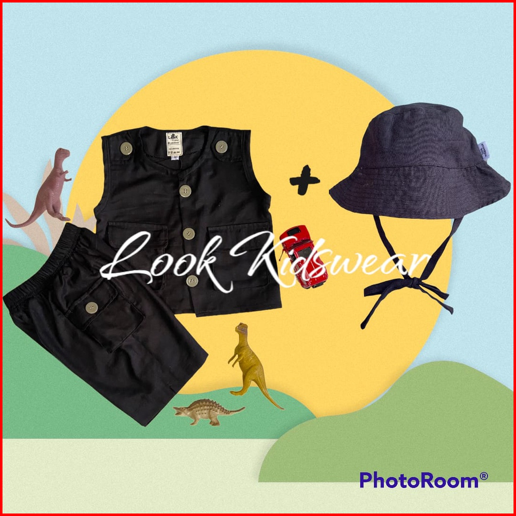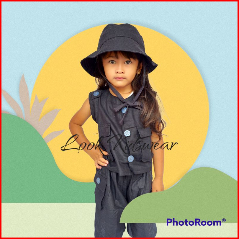 Rompi Setelan Anak Topi Rompi Tactical Anak Usia 1-5 Tahun - Linen Rami