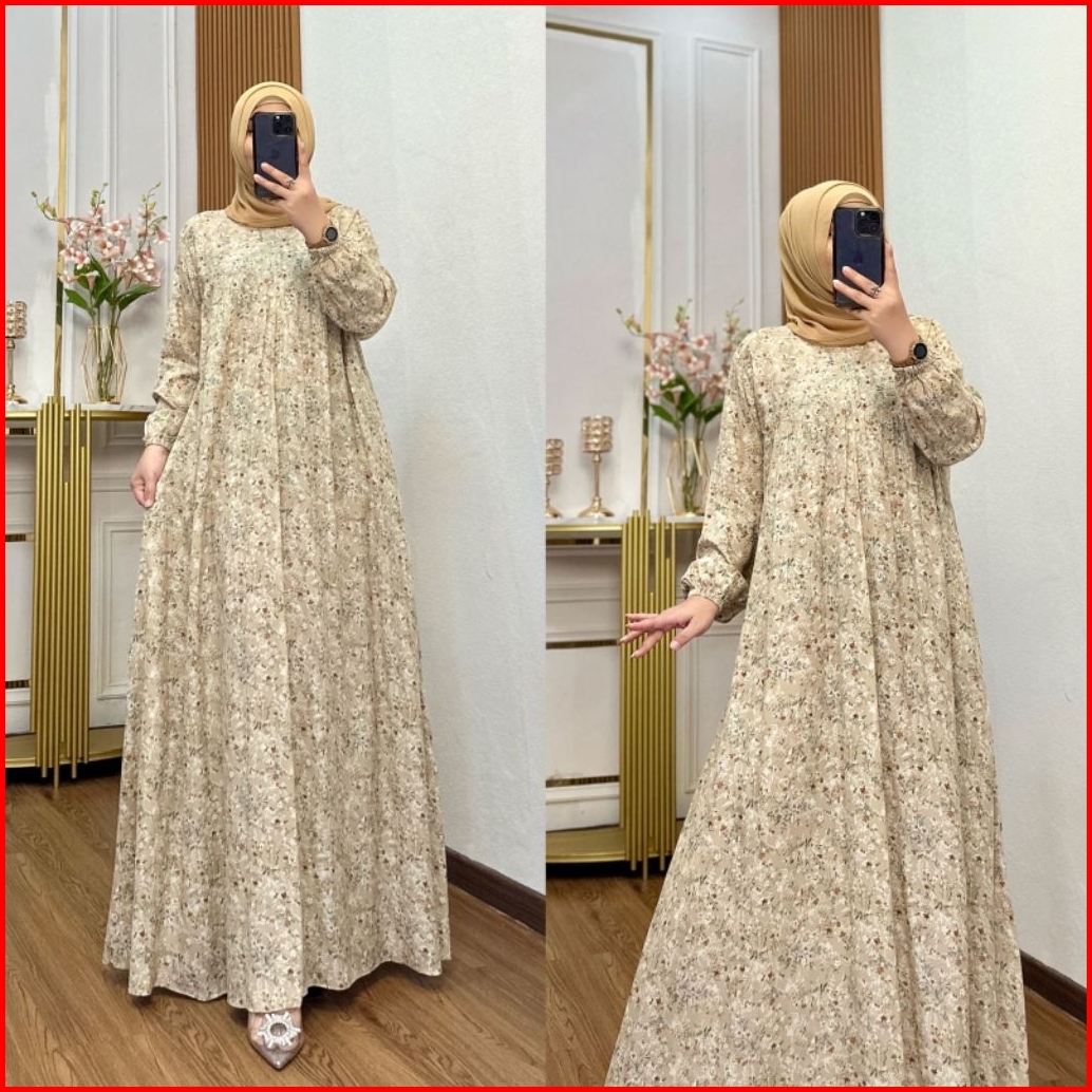 Gamis Terbaru Bahan Katun Rayon Diamond Premium Motif Bunga Dresss Dewasa Katun Premium