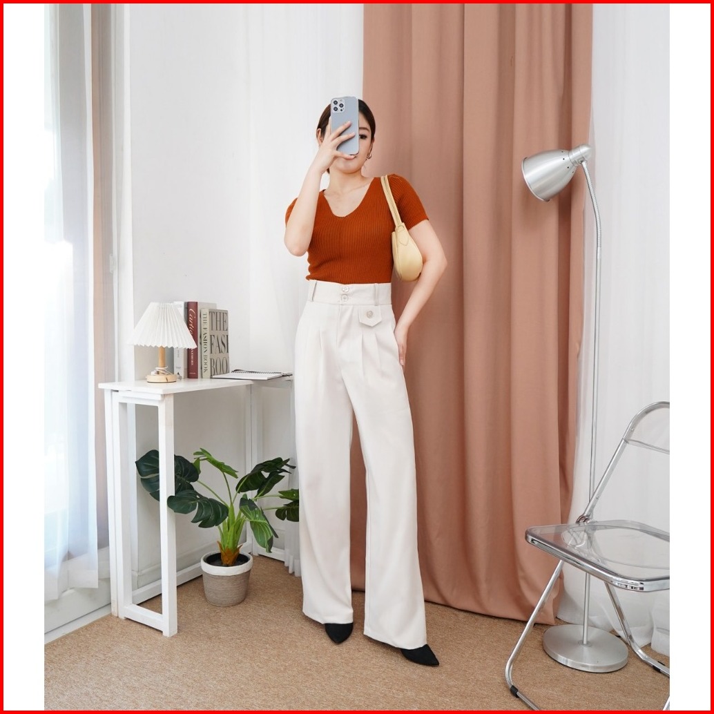 Ivory - Celana Wanita Kulot Loose Pant Trouser Celana Highwaist Wanita Cullot Kekinian Terbaru Trend
