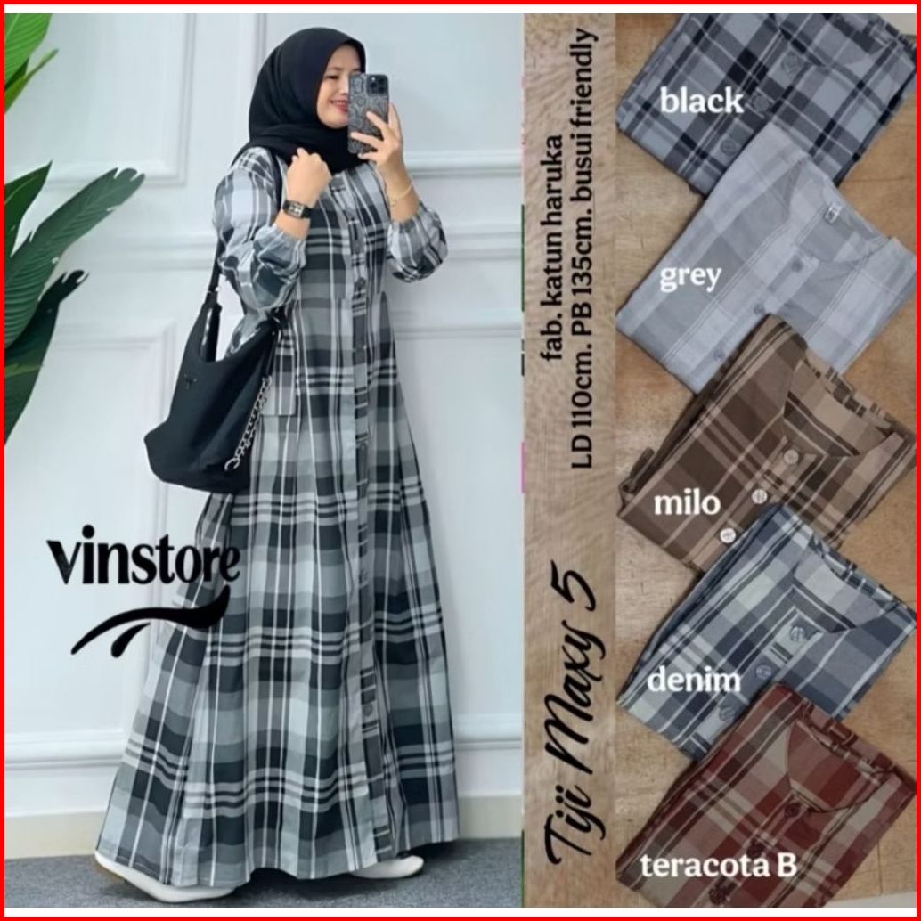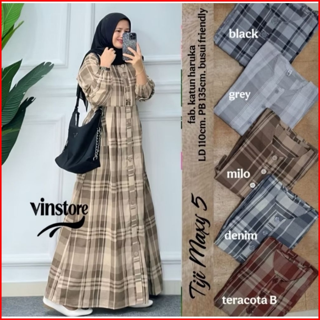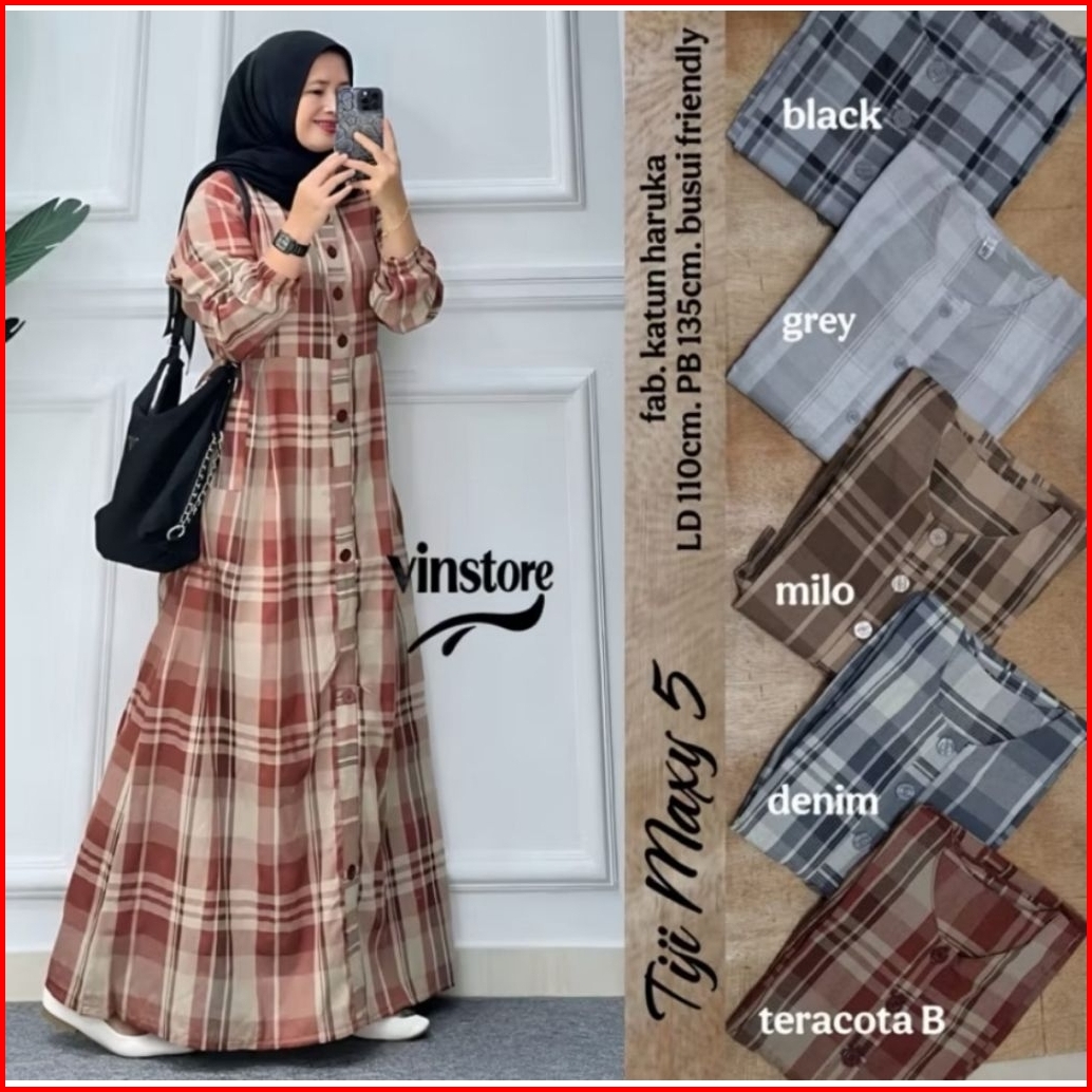Tiji Maxy 5 Gamis Haruka Motif Kotak Katun L-xl