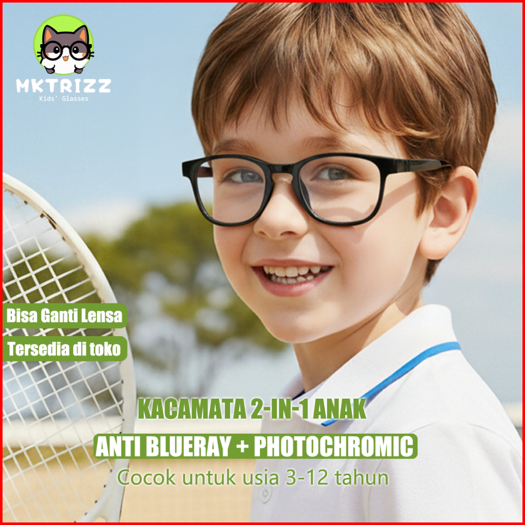 Mktrizz Kacamata Anak Anti Radiasi Photochromic Kacamata Minus Blueray Bluecromic Bulat Persegi Tr90