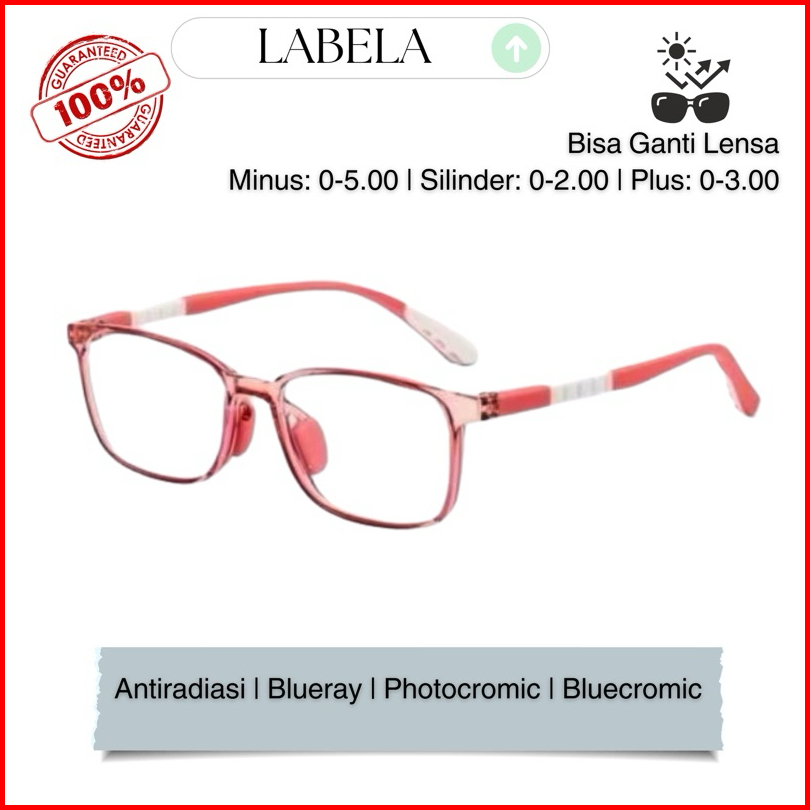 Labela - Kacamata Minus Anak 5288 Lensa Anti Radiasi - Blueray - Photocromic - Bluecromic Frame Fashion Anak Gratis Minu