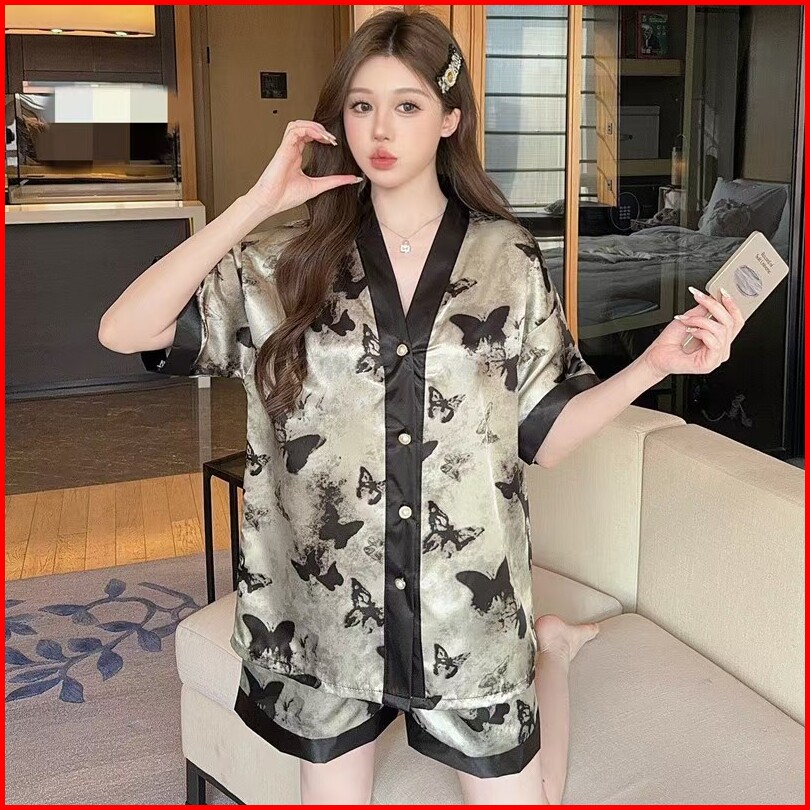 Celana Pendek Lengan Pendek Piyama Sutra Es Pakaian Rumah Manis Wanita Dua Potong Set