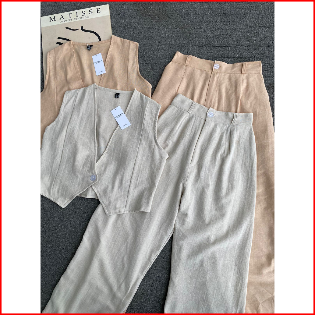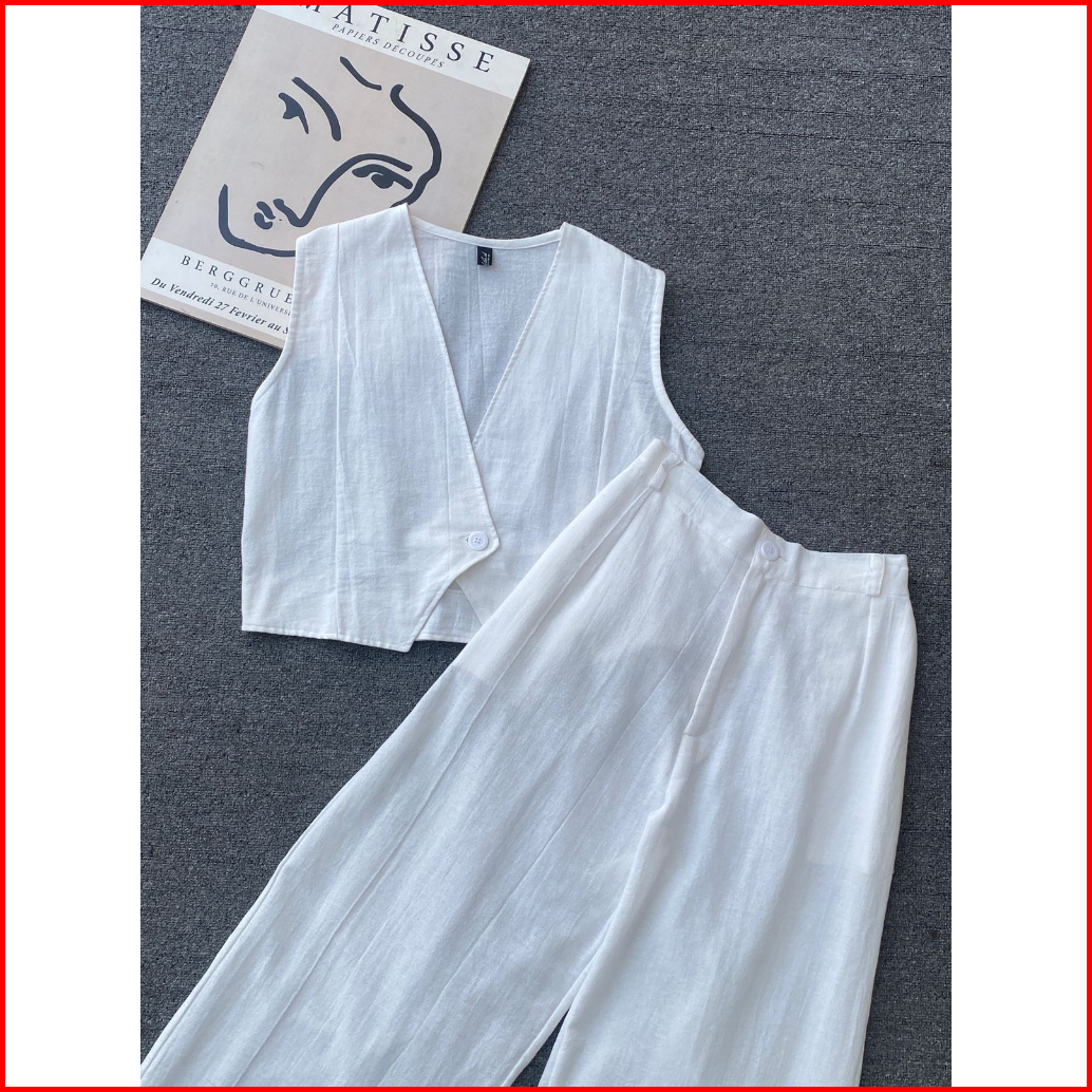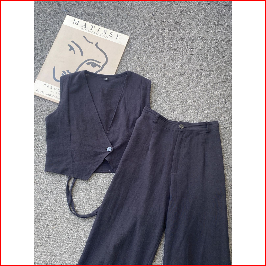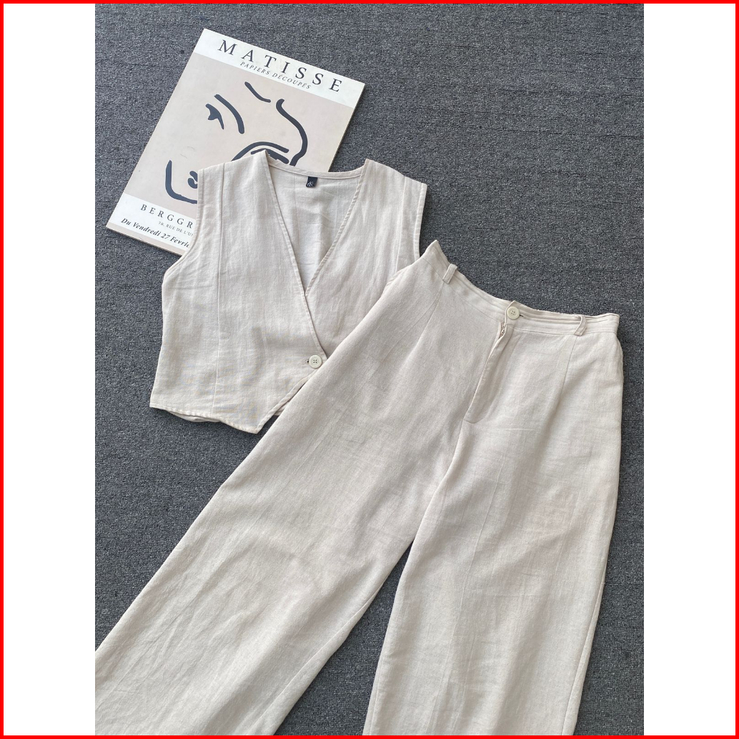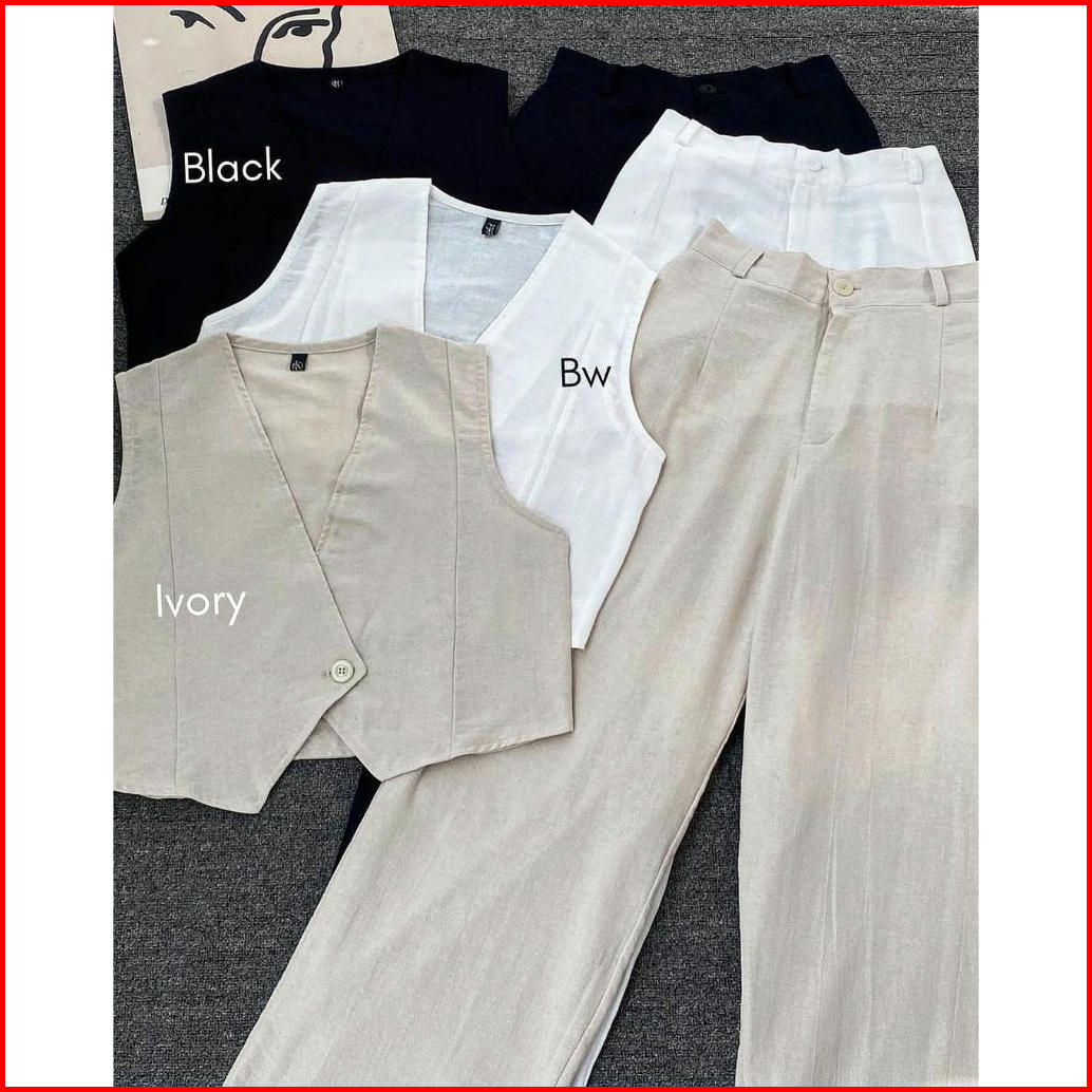 Kuy - Viral 2025 Bianca Oneset Vest Pants Korean Style Setelan Wanita Terbaru Linen Angel