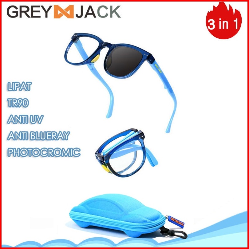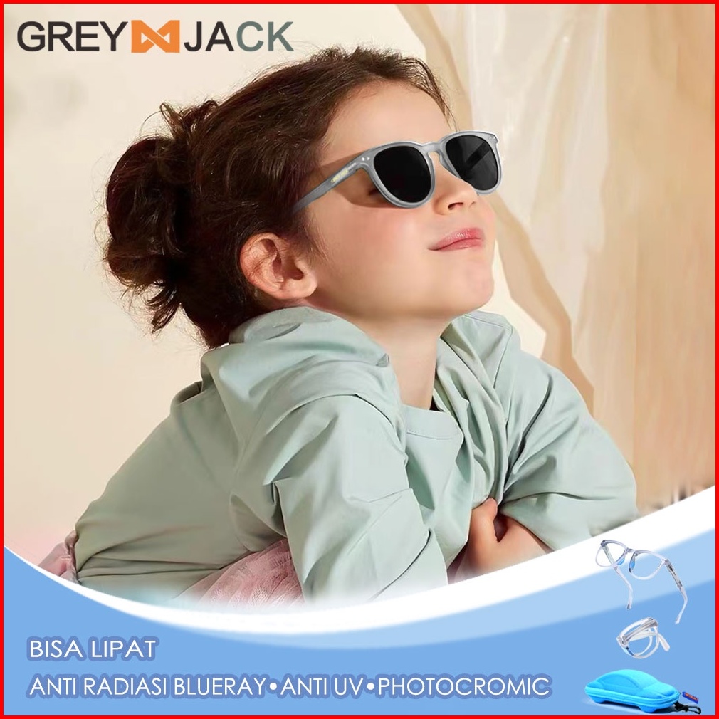 Grey Jack Kacamata Anak Bisa Di Lipat Antiradiasi Blueray Photocromic Anti Uv 3in1 Tr90 Silicon Terbaru Fashion Anak Lak