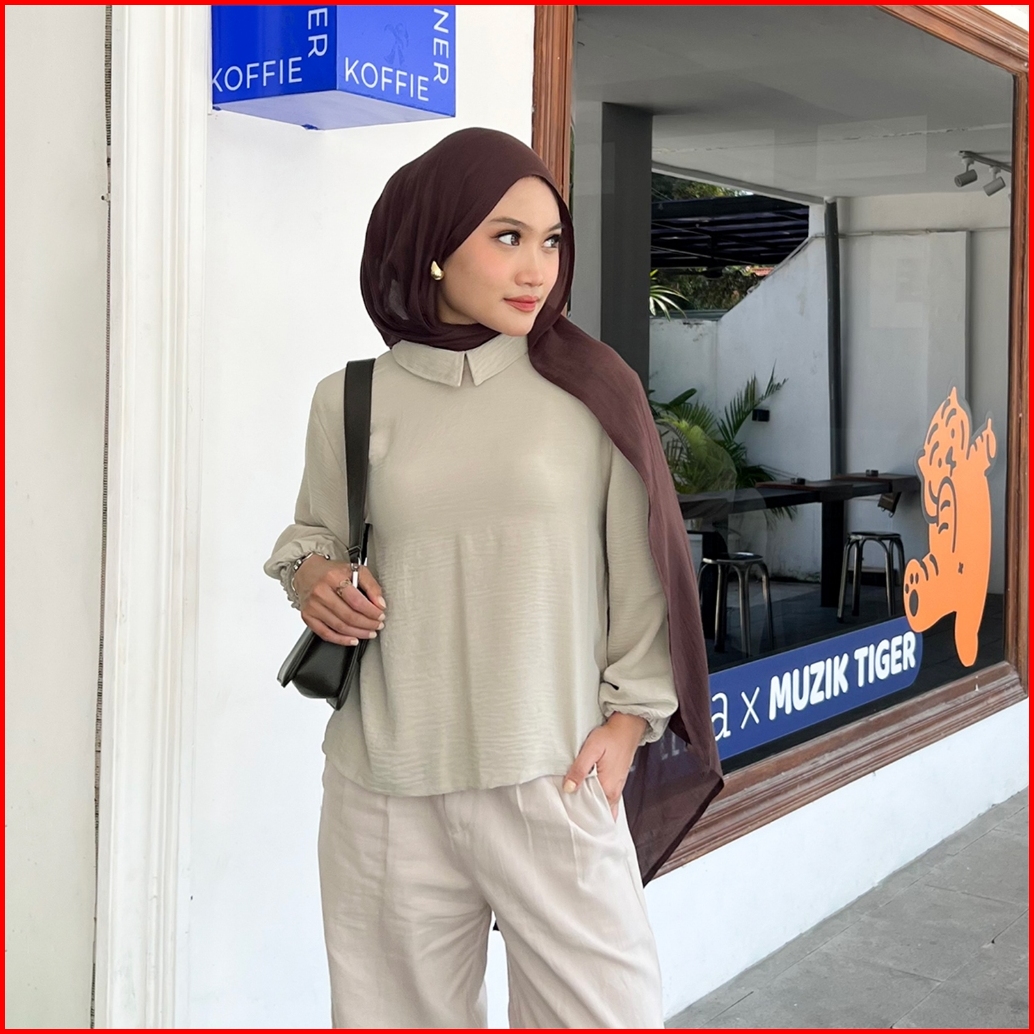 Yeppuoutfit - Haneul Blouse Basic Blouse Lucu Korean Style Berbahan Airflow Crepe Adem Nyaman