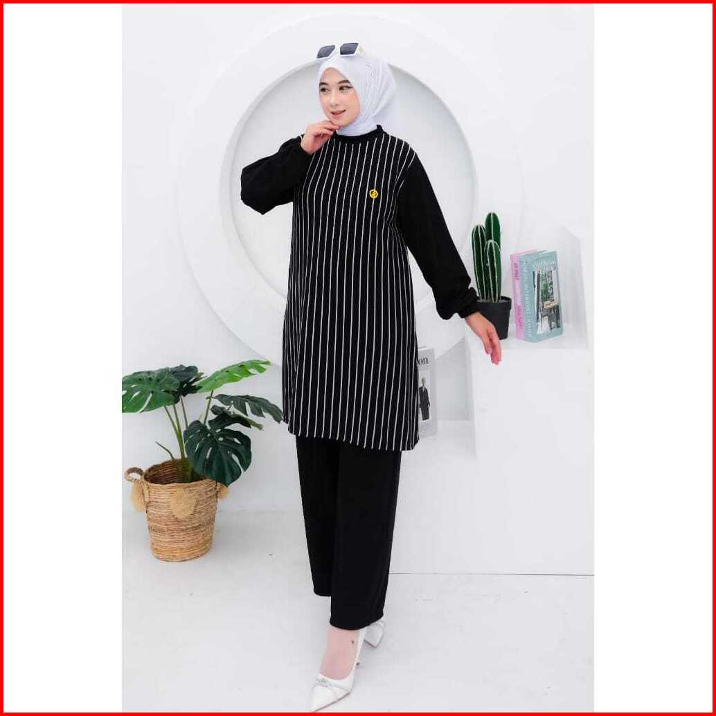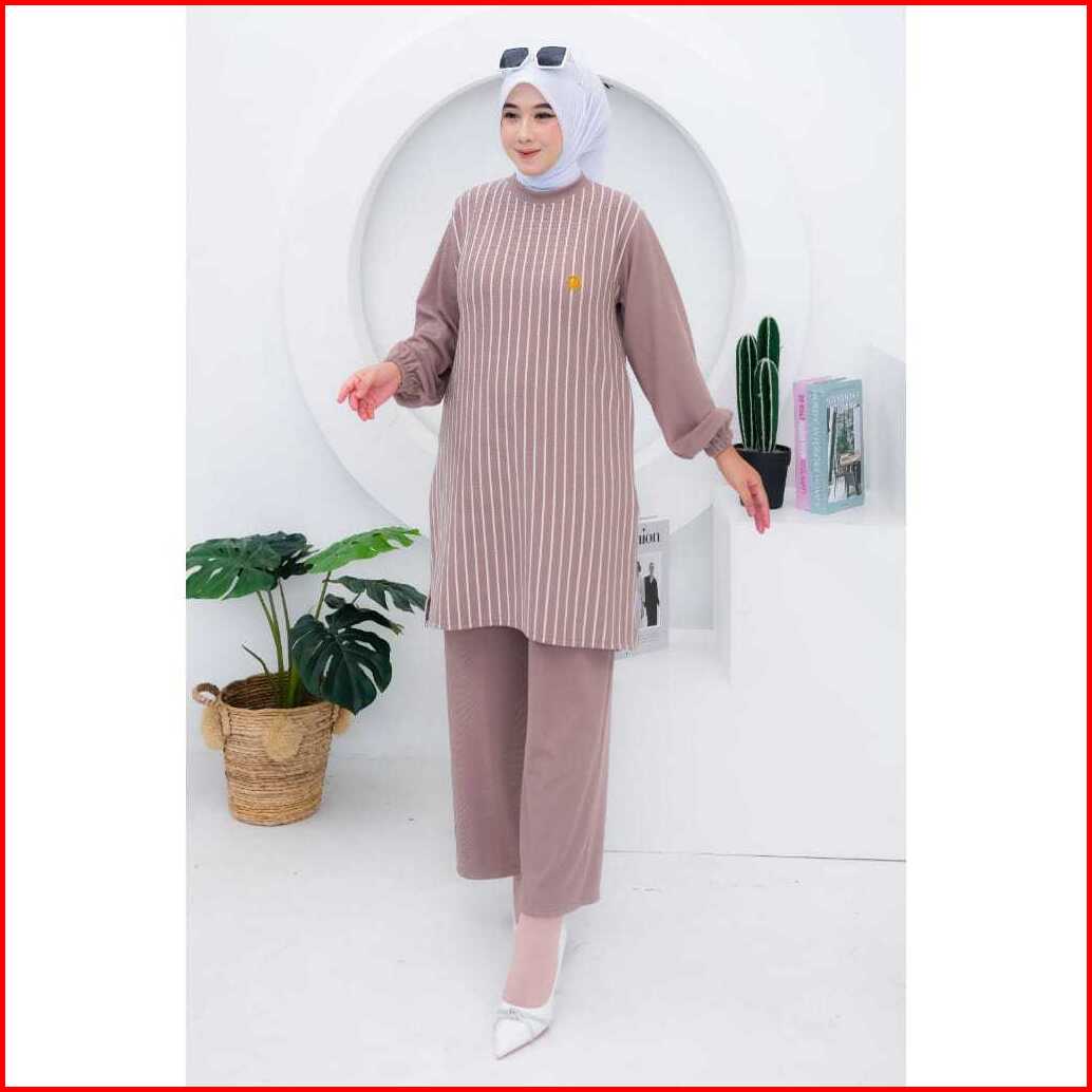 Raisa Set Baju Celana Setelan Salur Katun Celana Panjang Oneset Wanita Terbaru Kekinian Virall