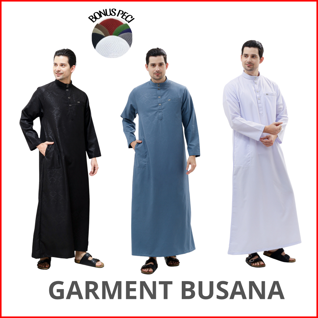 Al-marwaz Jubah Pria Dewasa Model Lengan Panjang Besway Motif Batik Terbaru Baju Muslim Gamis Remaja