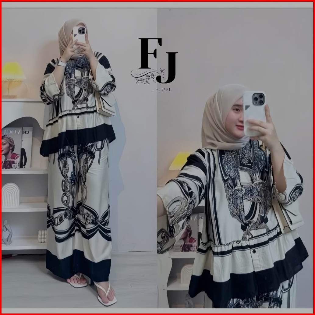 One Set Wanita Terbaru -setelan Rayon Premium Terbaru Virall Busui Adem Atasan Celana Kulot Panjang Motif