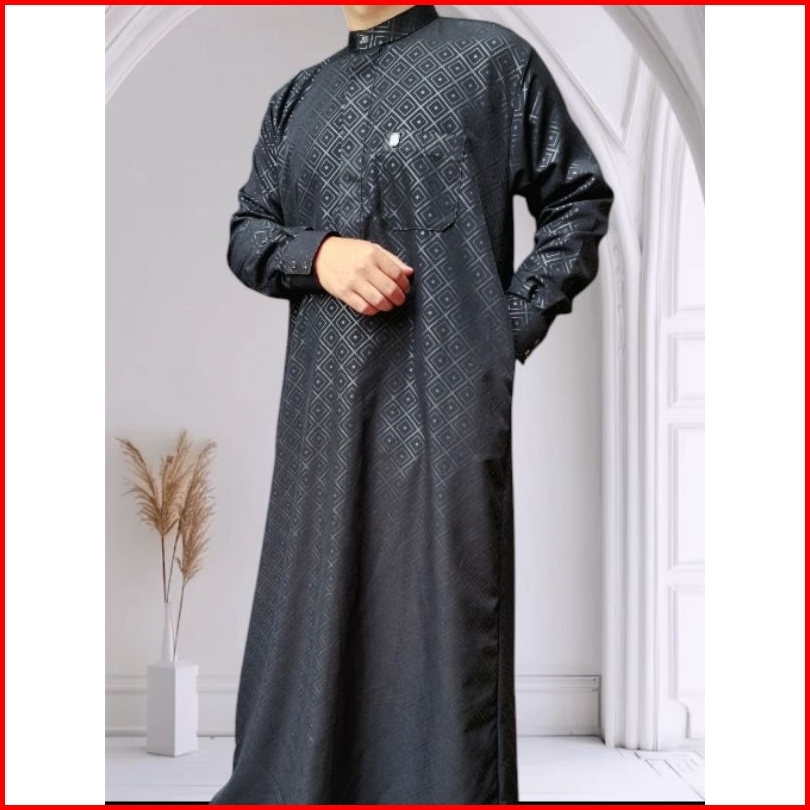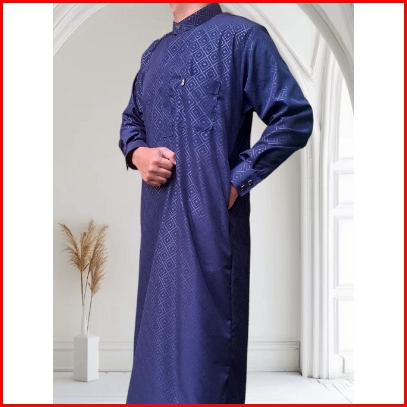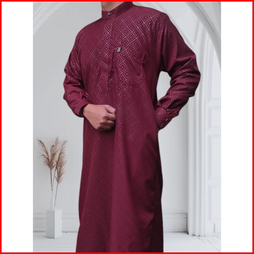 Jubah Gamis Koko Pria Muslim As Syamil Lengan Manset Bahan Katun Embos Premium