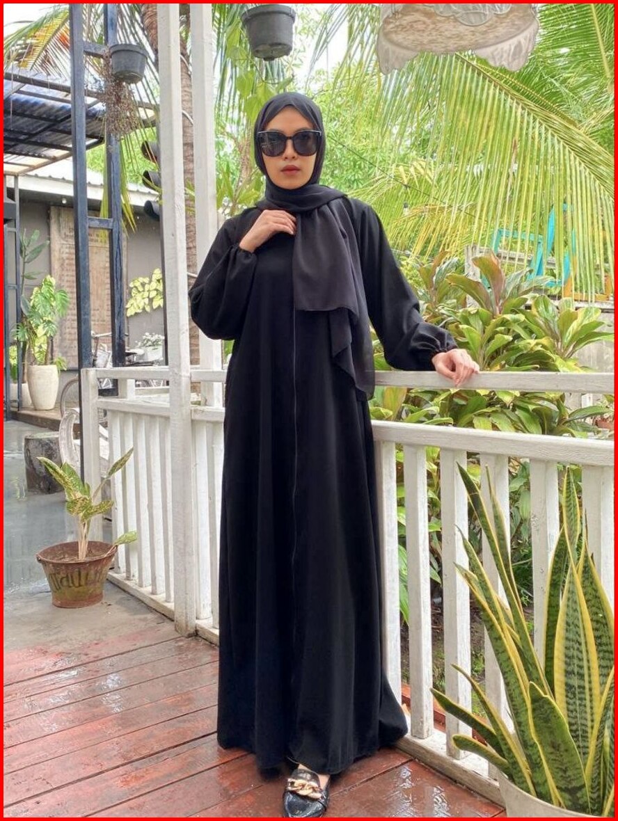 Abaya Hitam Gamis Saudi Jetblack Premium Bordir Simple - Helwa Bordir