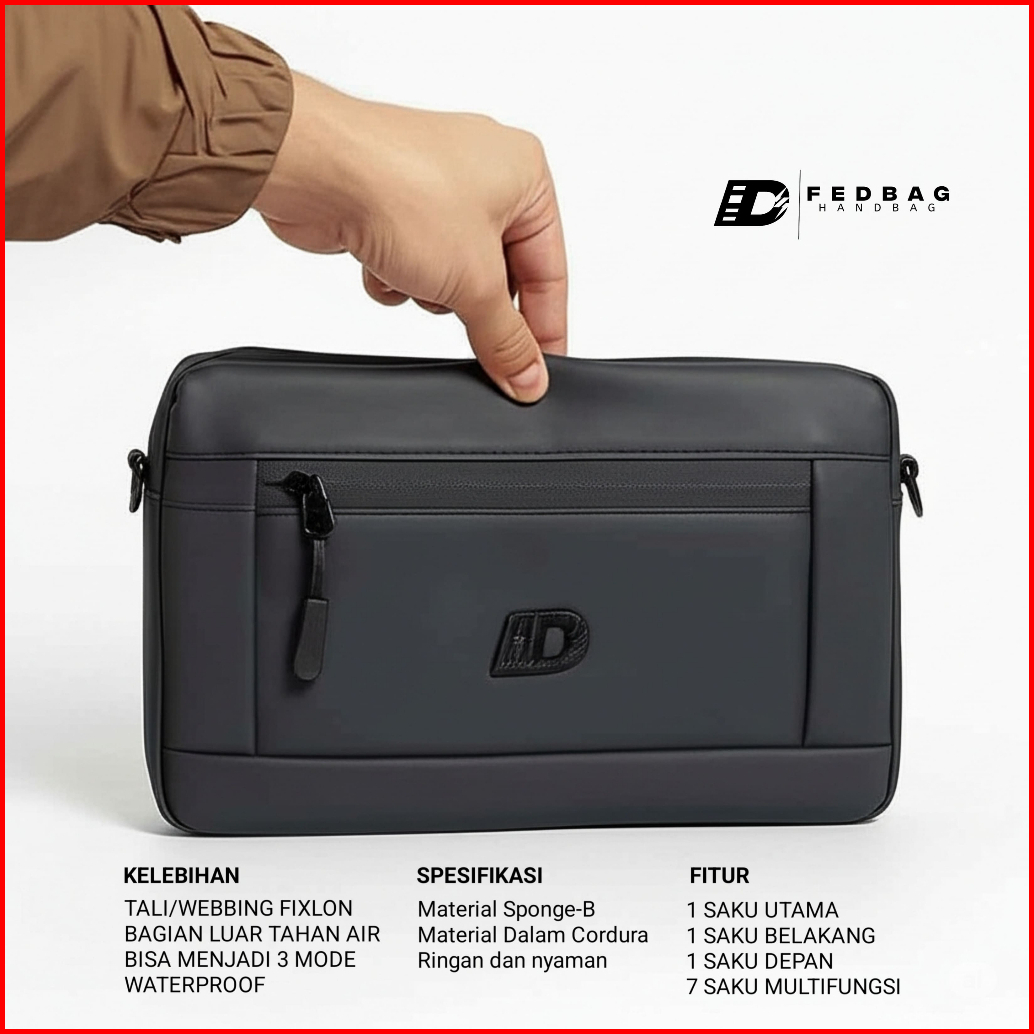 Fed Tas Handbag Pria Solano Multifungsi All In One Anti Air Clutch Selempang Cowok