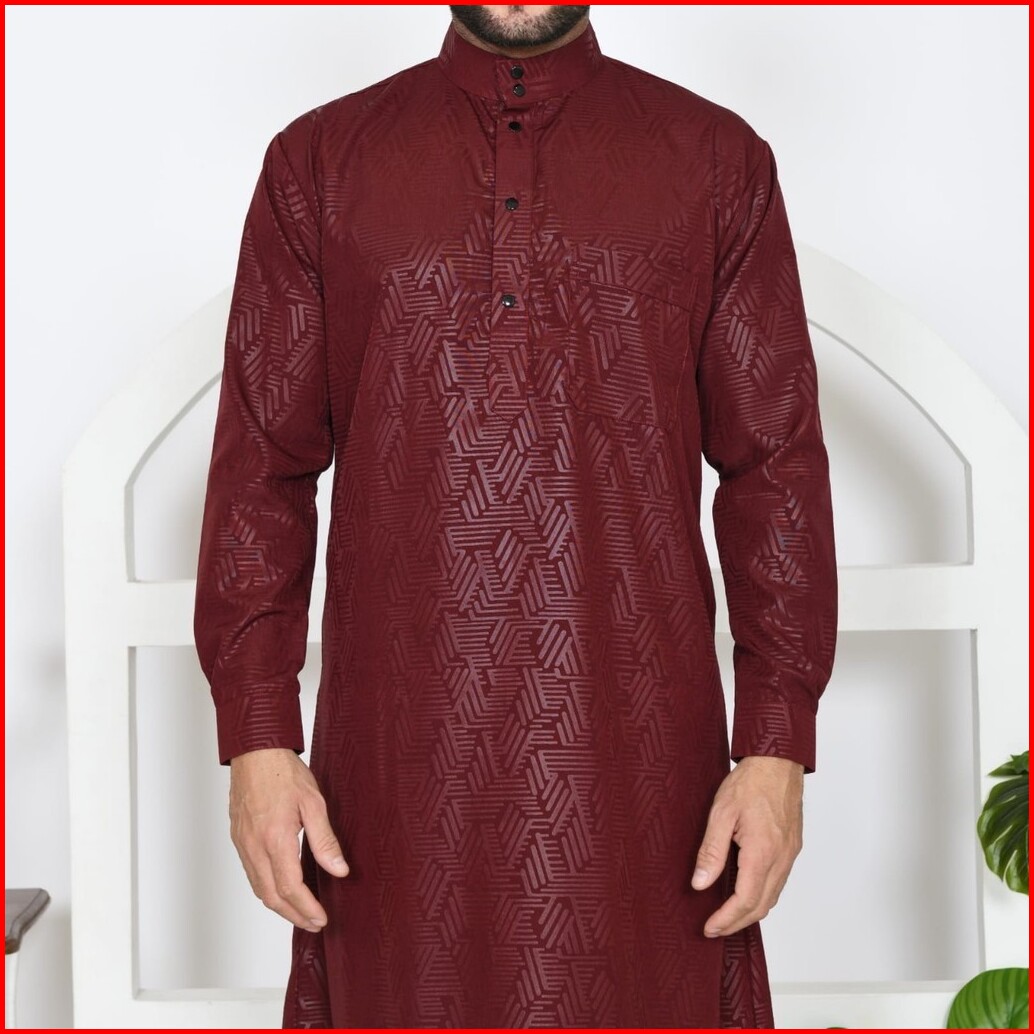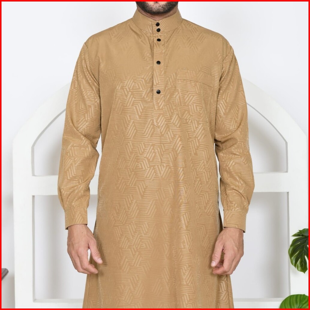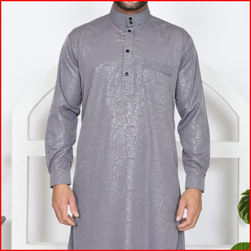 Fourmonth Jubah Embos Slimfit Motif Etnic Lengan Panjang Manset