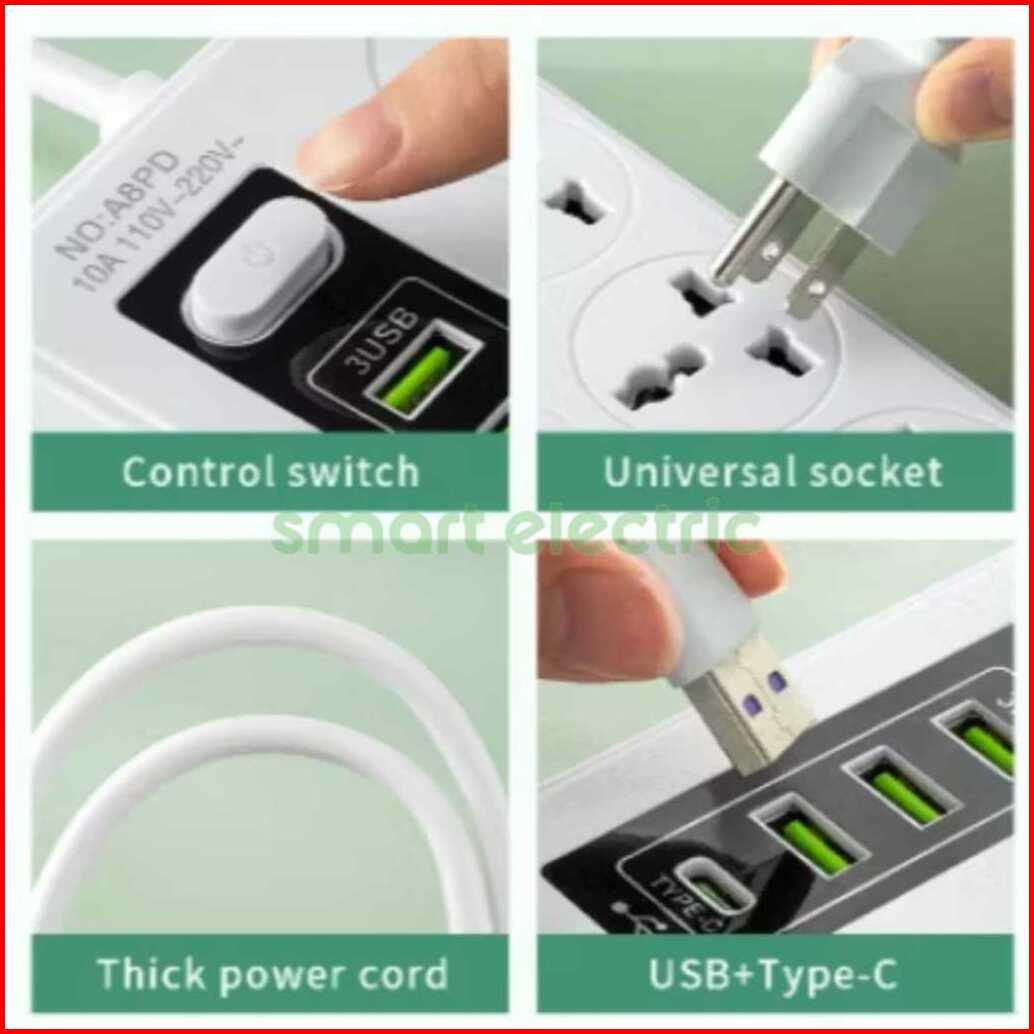 Stop Kontak Usb Terminal Colokan Universal Kaki 3 Dan 2 Kabel 2.6 Mtr Saklar On Off