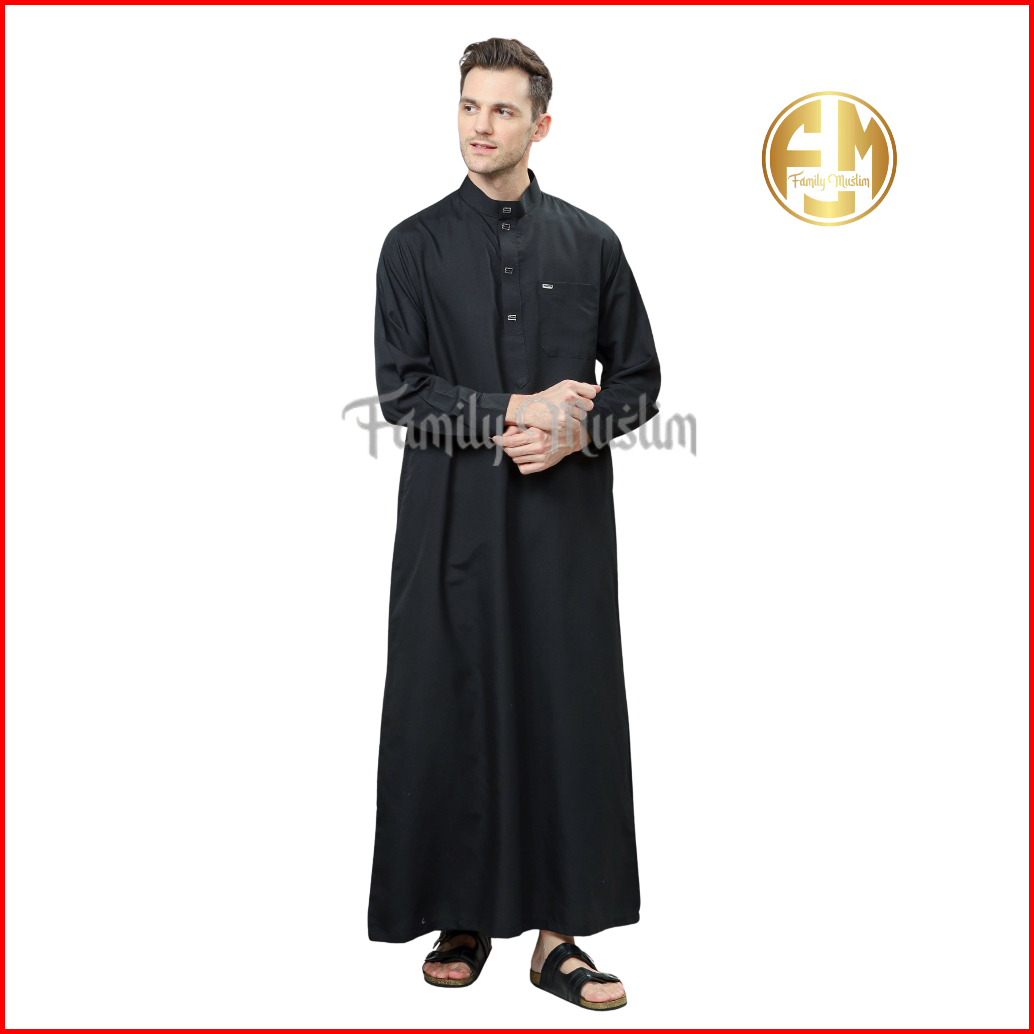 Family Muslim - Jubah Pria Maqbul Gamis Muslim Dewasa Polosan Model Tangan Manset Kain Katun Premium