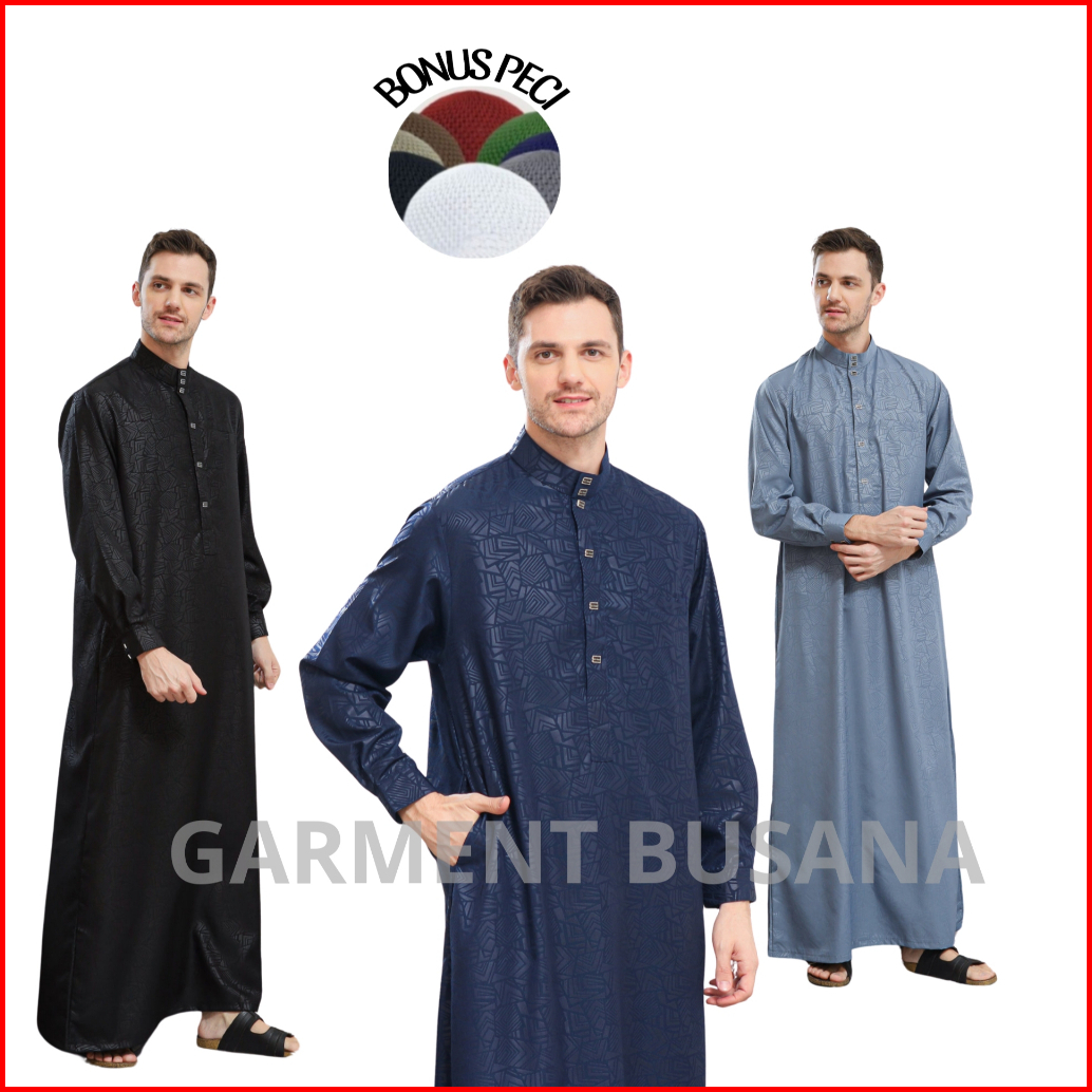 Jubah Gamis Pria Lengan Panjang Manset Katun Embos Premium Jubah Emiratmewah Terbaru Gamis Laki-laki