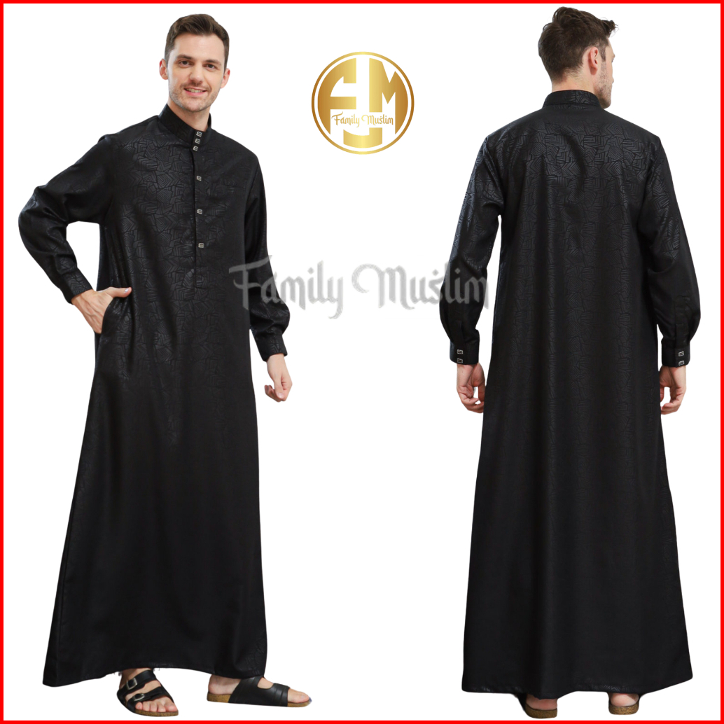 Family Muslim - Gamis Jubah Lengan Panjang Manset Motif New Gamis Laki-laki Premium Jubah Mewah Arab
