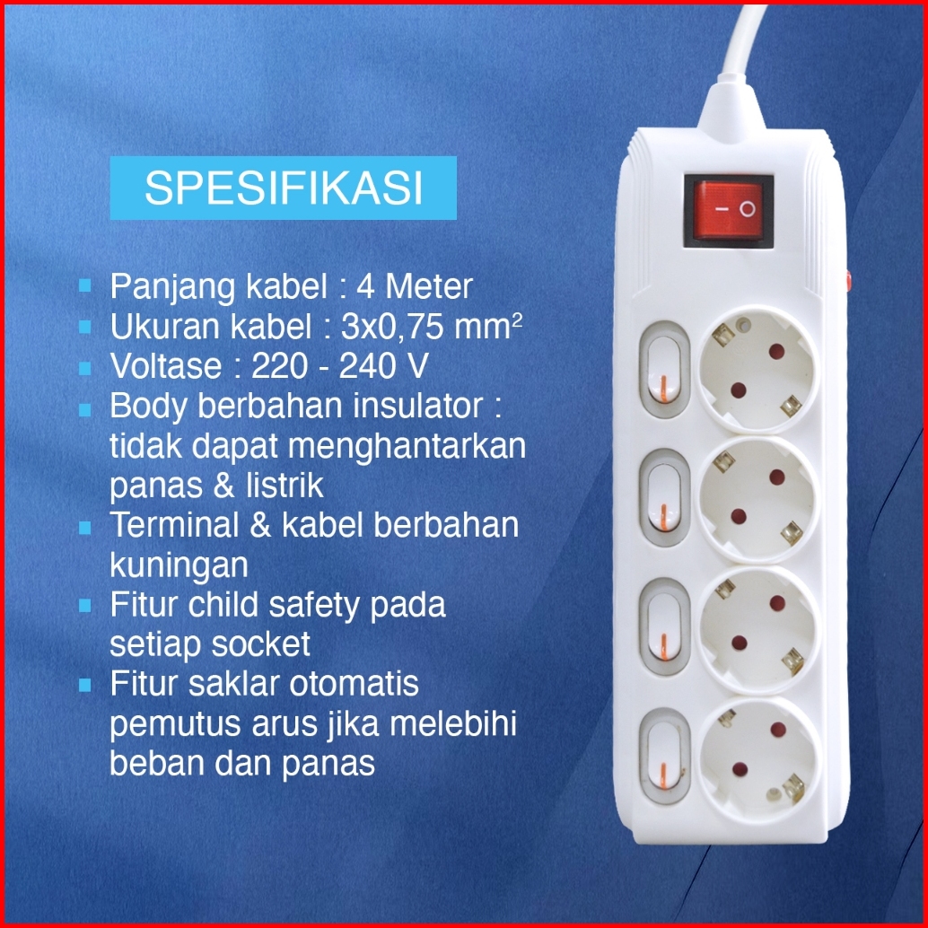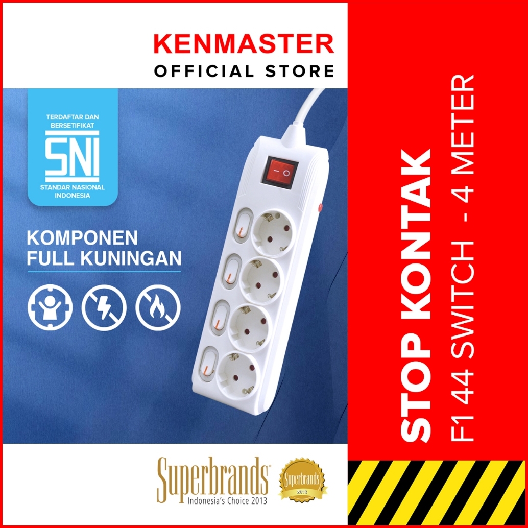 Kenmaster Stop Kontak F1-44 Switch - 4 Lubang - 4 Meter - Stka185