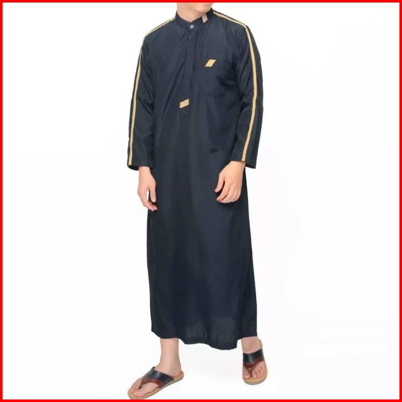 Gamis Pria Jubah Pria Hitam Lengan Panjang Lis Moca