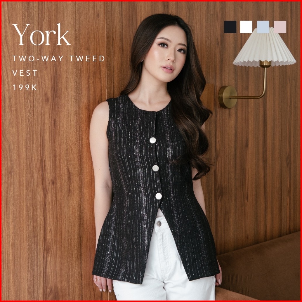 York Two-ways Tweed Vest -- Ocha Wear X Valerie Pola Pakaian Wanita Premium Tweed Elegant Trendy