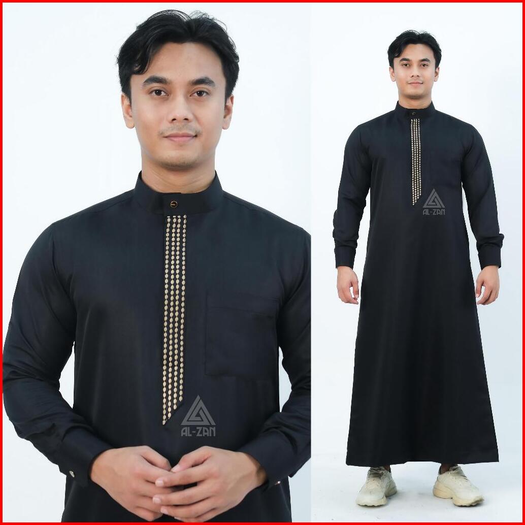 Jubah Pria Muslim Slimfit Jubah Gamis Pria Lengan Panjang Bordir Busana Muslim Baju Jubah Muslim Katun Toyobo Manset Dew