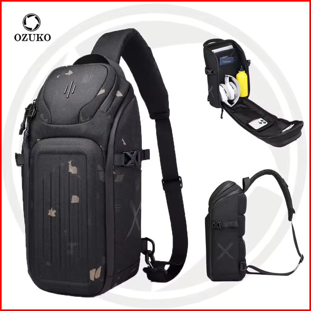 Ozuko Sling Bag 9729 - Hitam Biru Camo Abu