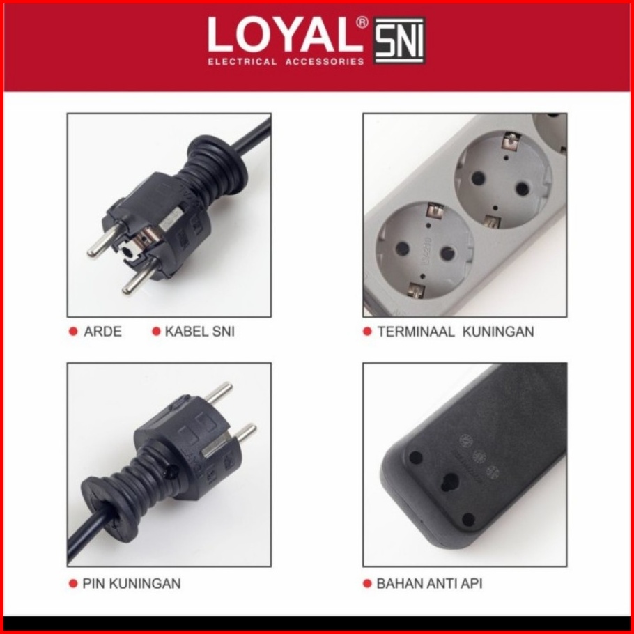 Stop Kontak 4 Lubang Loyal Ly-208 Dengan Saklar Dan Kabel 3 Meter