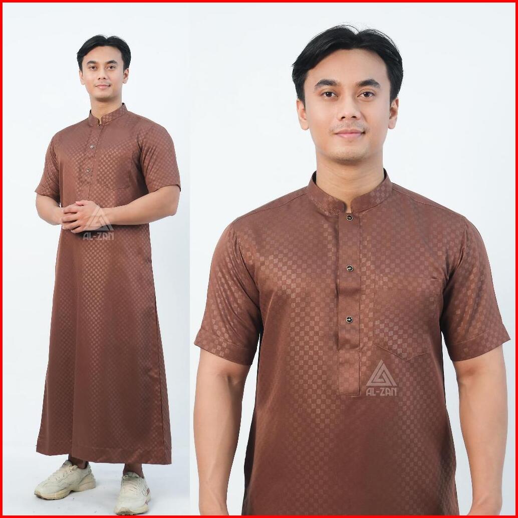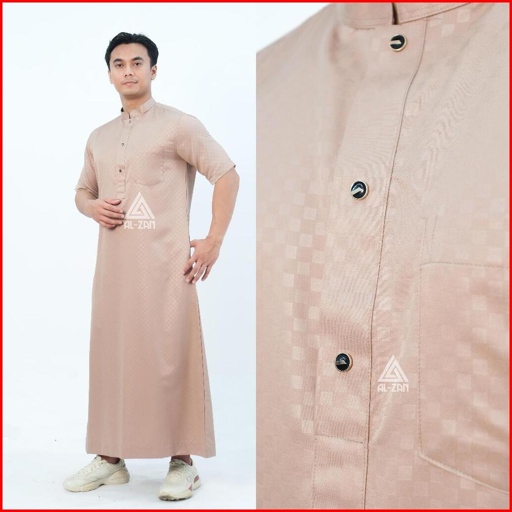 Jubah Pria Muslim Slimfit Jubah Gamis Pria Lengan Pendek Busana Muslim Baju Jubah Muslim Kancing Katun Toyobo Dewasa Alz