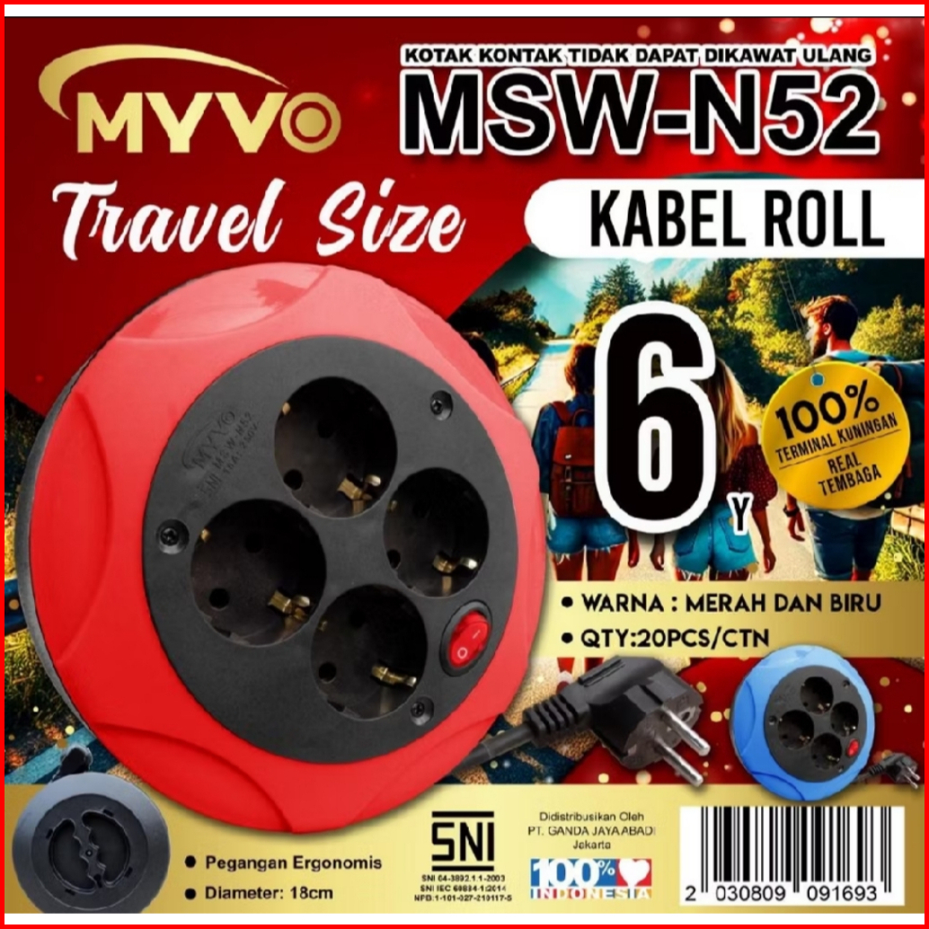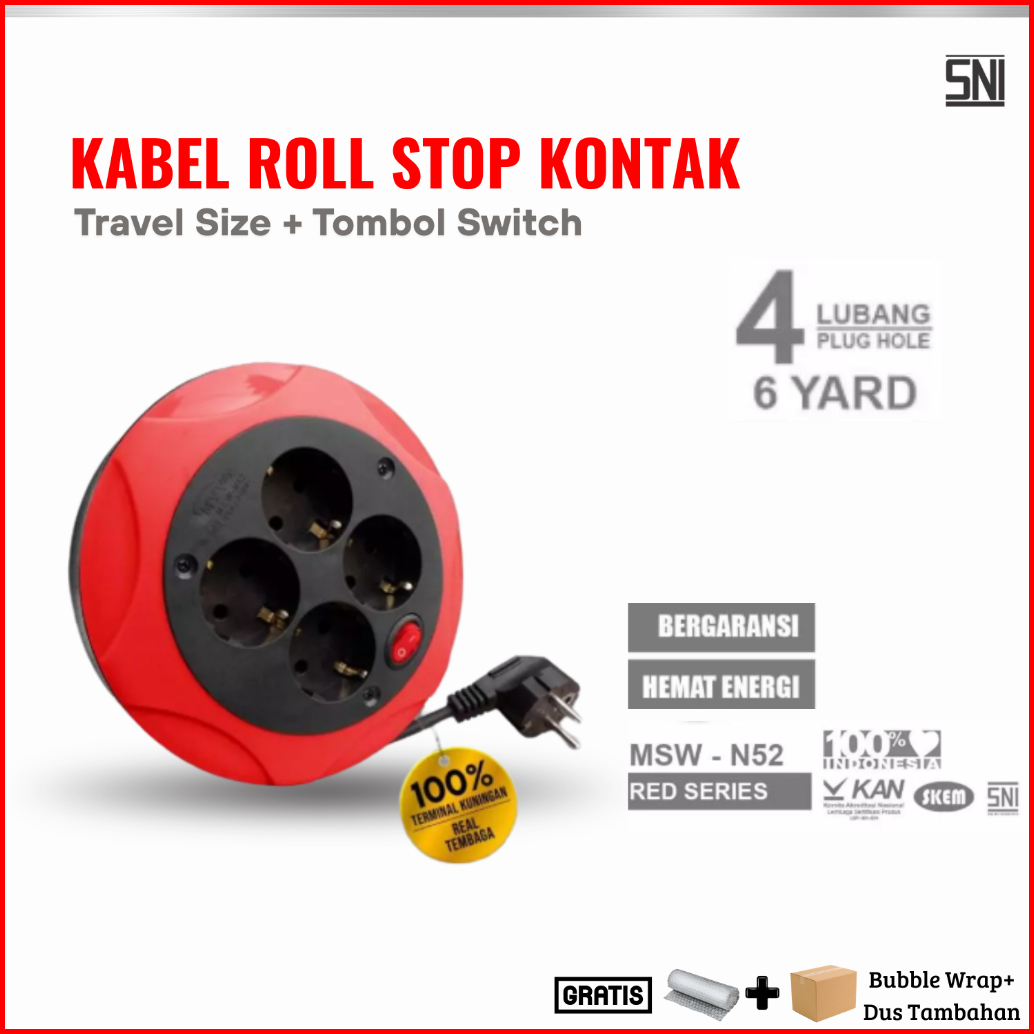 Kabel Roll Listrik 4 Lubang Saklar Terminal Box Colokan Kuningan Panjang 6yard Sni