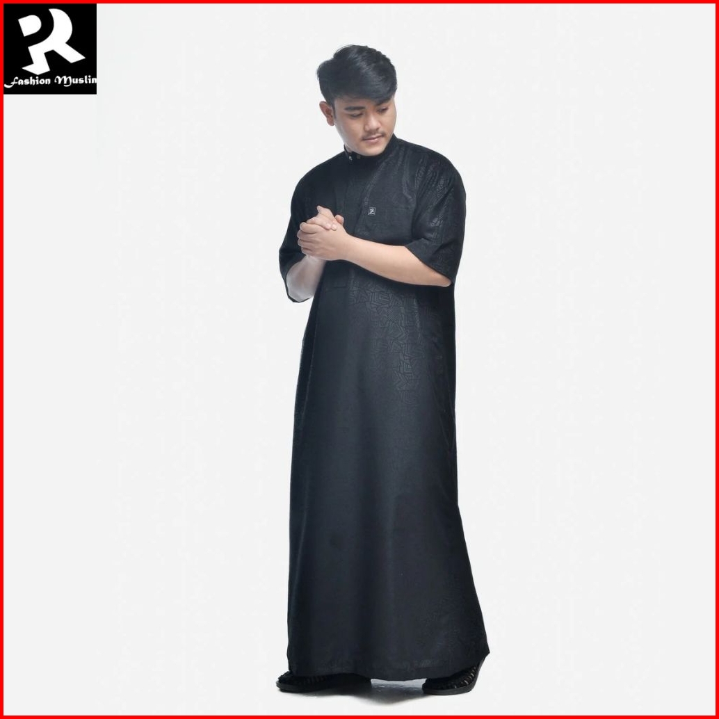 Alashar Jubah Gamis Pria Dewasa Lengan Pendek Motif Embos Terbaru