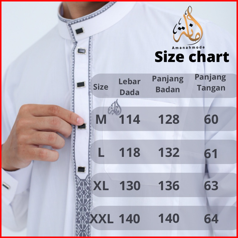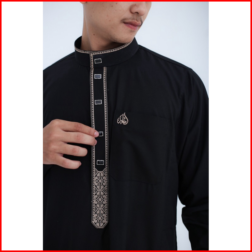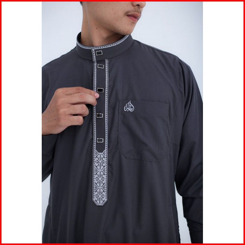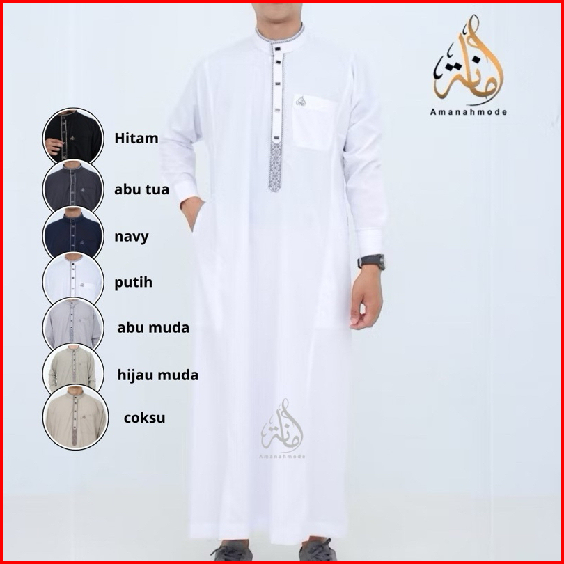Gamis Pria Dewasa Premium Jubah Haramain Saudi Thobe Lengan Manset Bordir M L Xl - Amanahmode 001