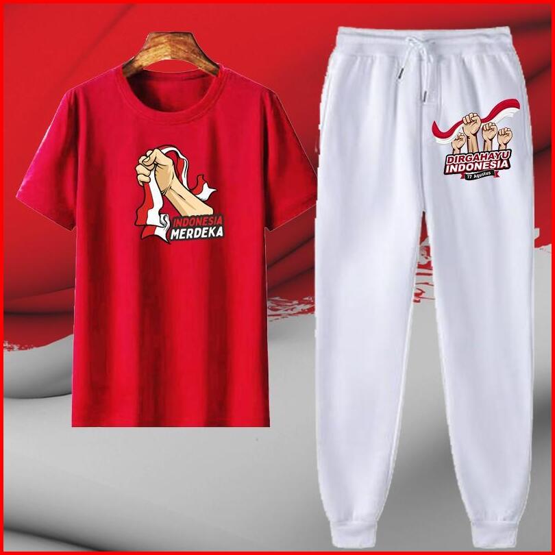 Setelan Satu Set Baju Dan Celana Merah Putih Agustusan Dirgahayu Indonesia