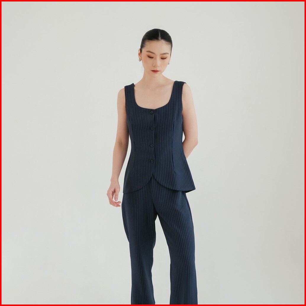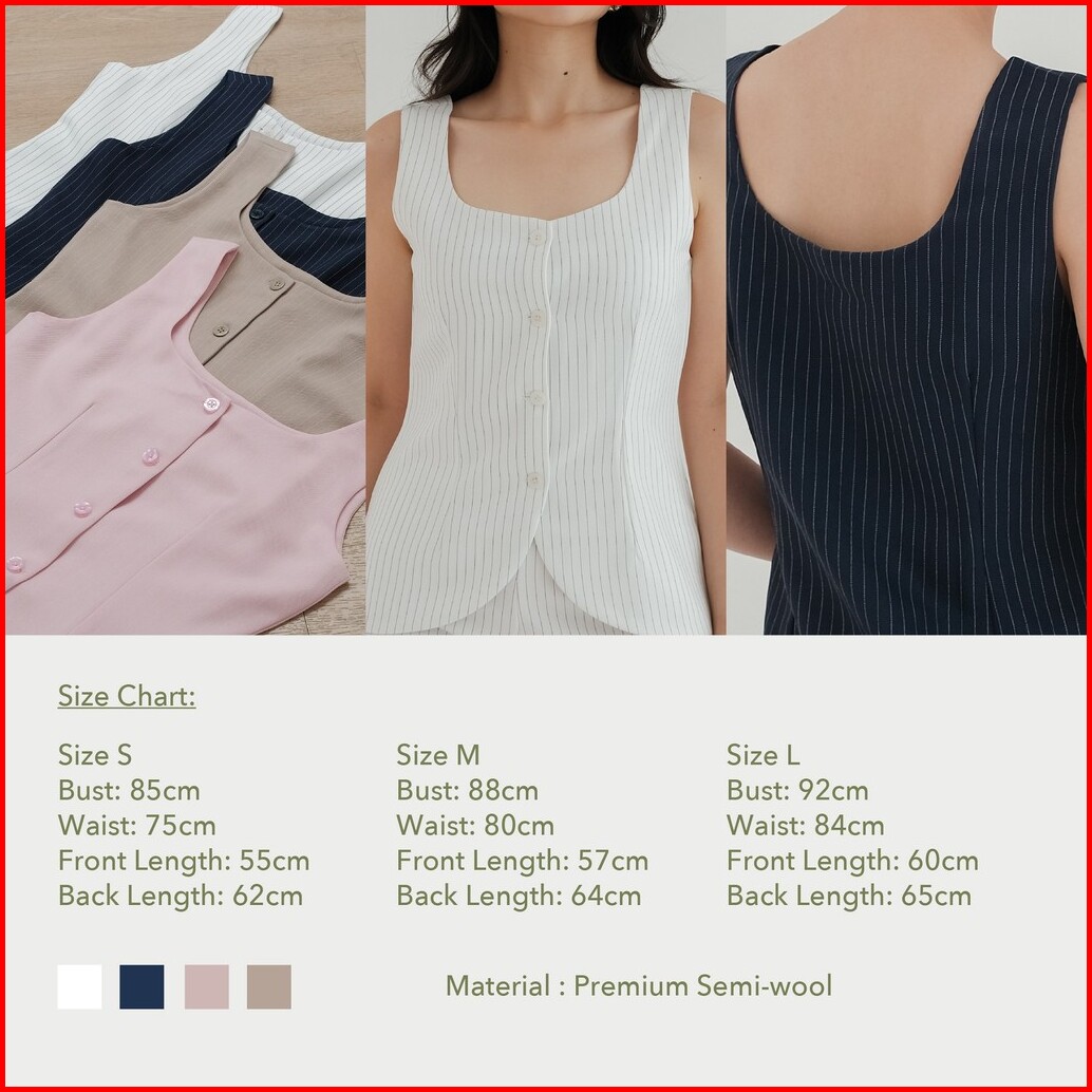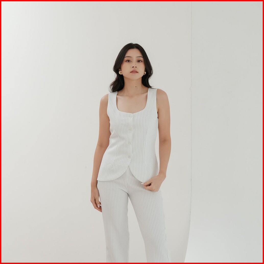 Manhattan Stripe Top -- Ocha Wear Vest Tanktop Buttons Stripes Pakaian Wanita Premium Elegant