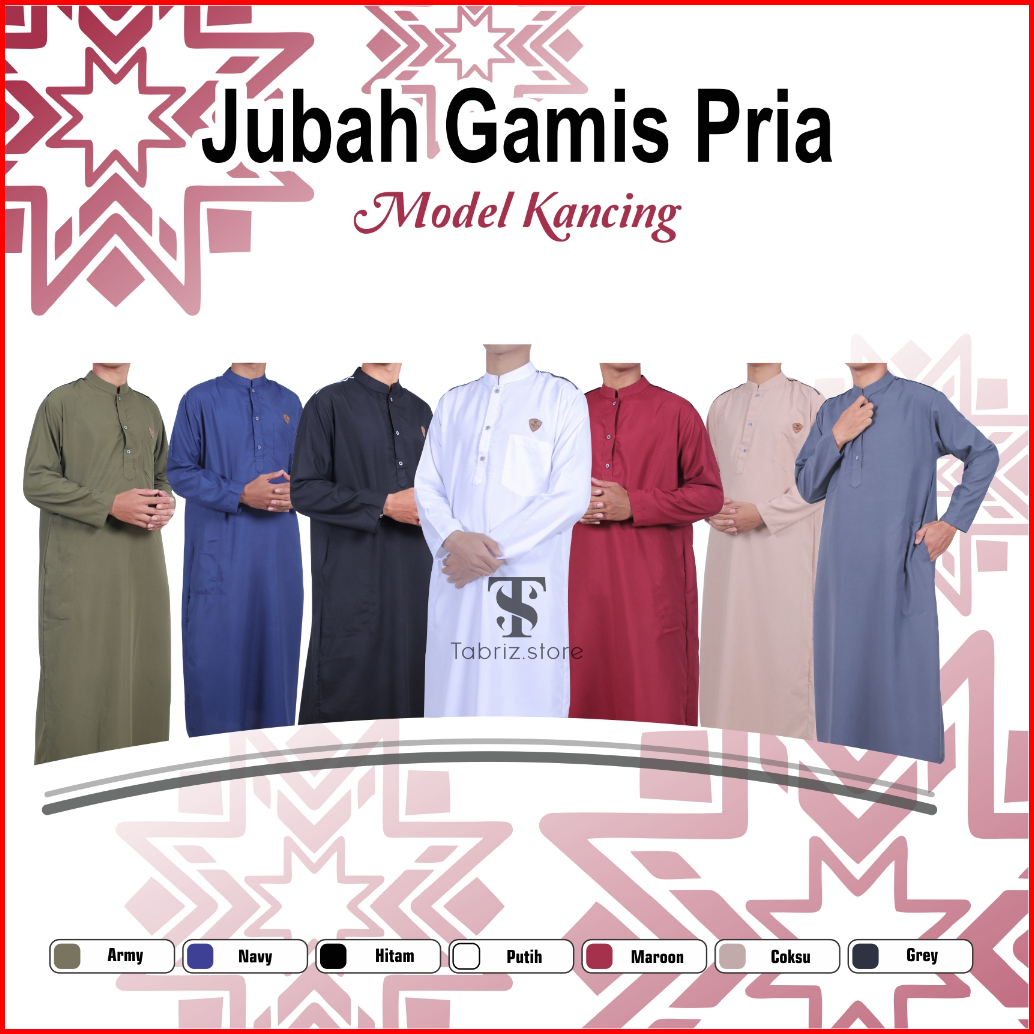 Jubah Gamis Muslim Pria Remaja Dewasa Model Lengan Panjang Model Kancing Kekinian Jubah Arab