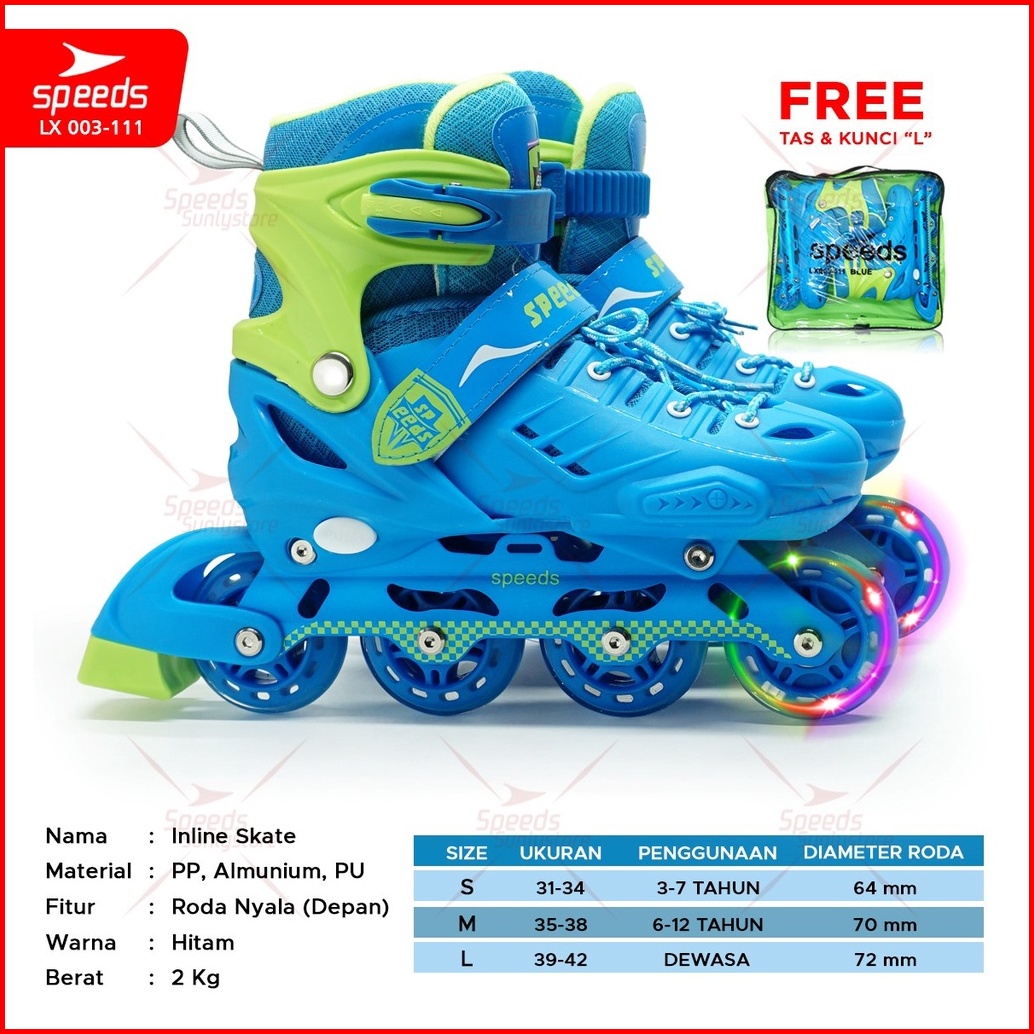 Speeds Sepatu Roda Anak Dewasa Inline Roda Full Karet Pvc Pu Remaja Bajaj Mode Roller Skate 003-111