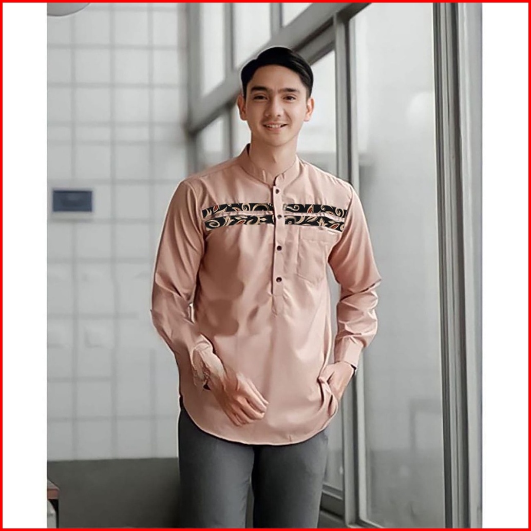 Baju Koko Pria Kayser Kombinasi Batik Lengan Panjang Muslim