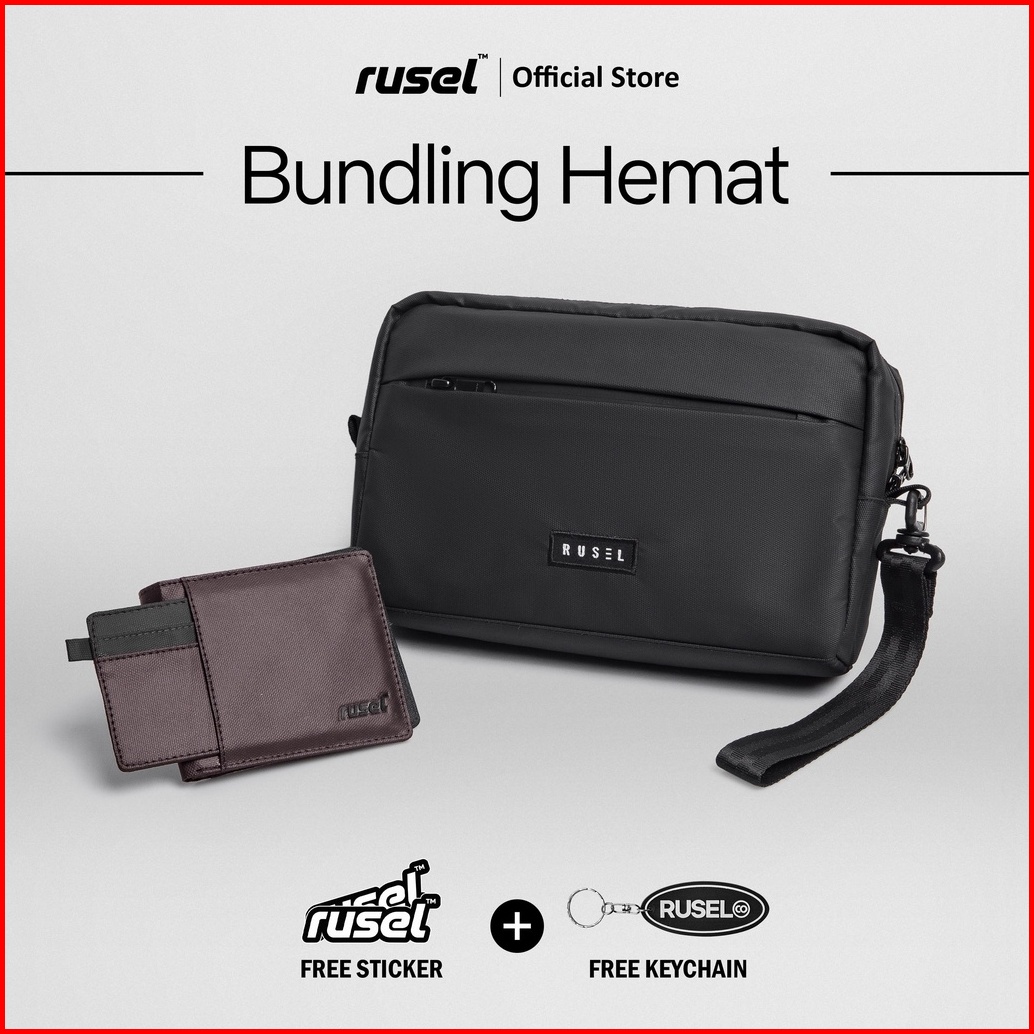 Rusel Co Exclusive Bundling Handbag Aruna Dan Wallet Hiro Paket Hemat Tas Clutch Pria Dan Dompet I Tas Dompet Pria