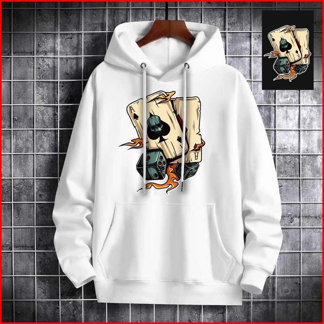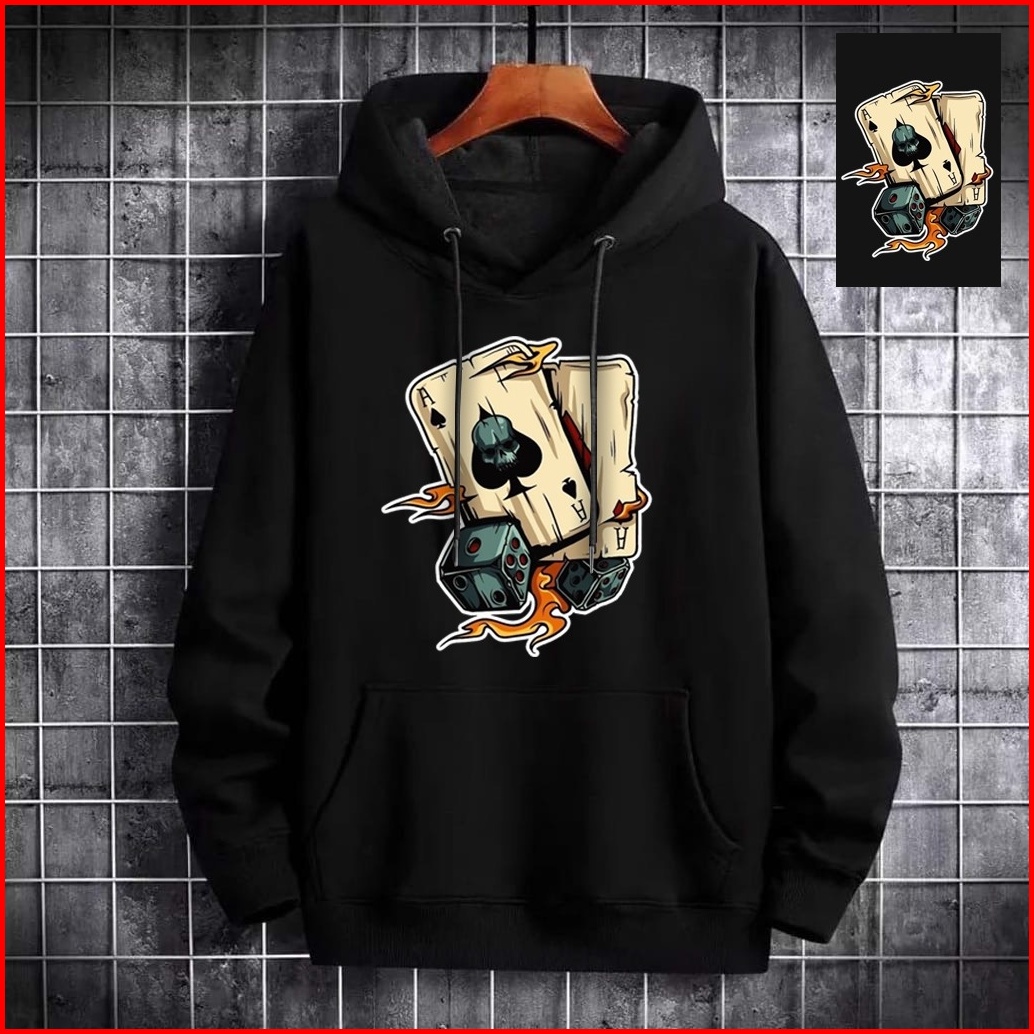 Sweater Hoodie Kayser Dadu Bahan Fleece Motif Printing Real Picture