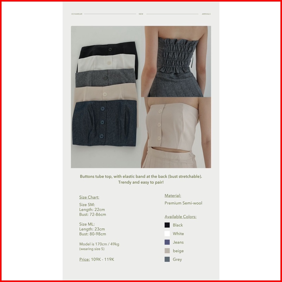 Dawn Tube Top Ocha Wear Crop Tanktop Camisole Atasan Kemben Wanita Basic Casual Tank Top