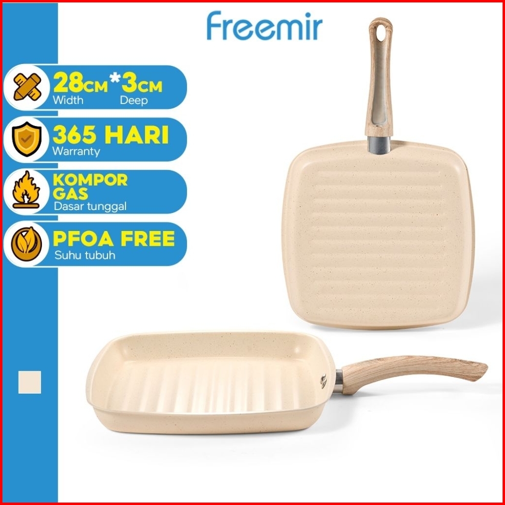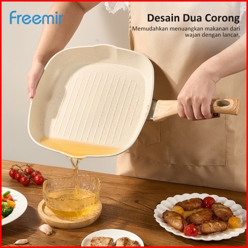 Freemir Wajan Steak Grill Marble 28cm Ceramic Anti Lengket