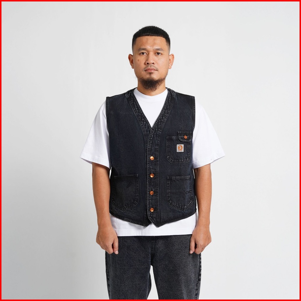Superego Vest Denim Rompi Pria Size M-xl Regular Fit V-neck Snow Black Vdw01g