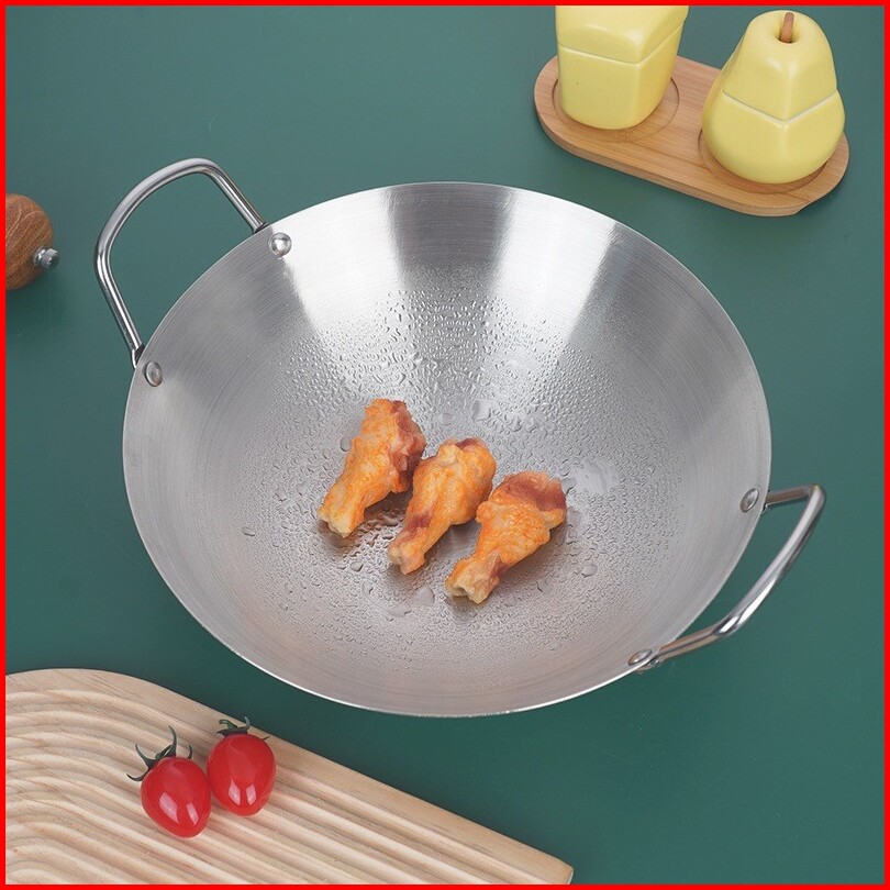 Wajan Premium Tebal Kuali Penggorengan Wok Stainless Steel Wajan Anti Lengket Food Grade