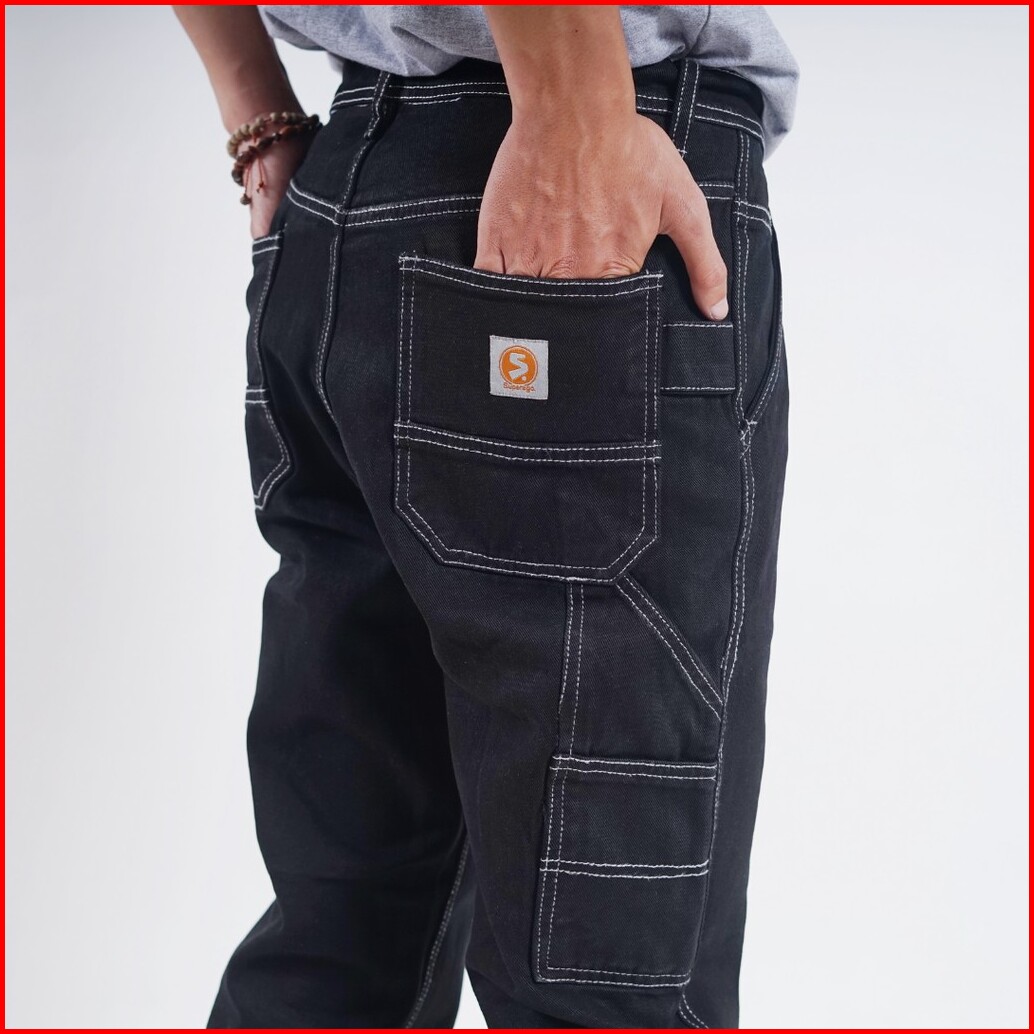 Superego Celana Carpenter Denim Jeans Panjang Utility Standar Black Cps02c