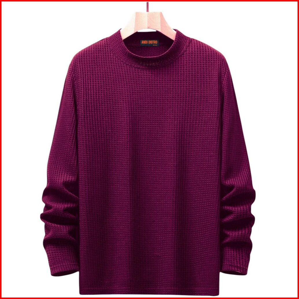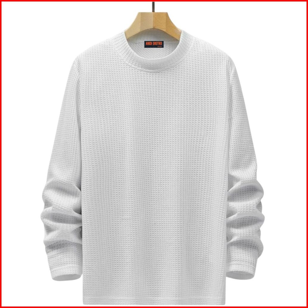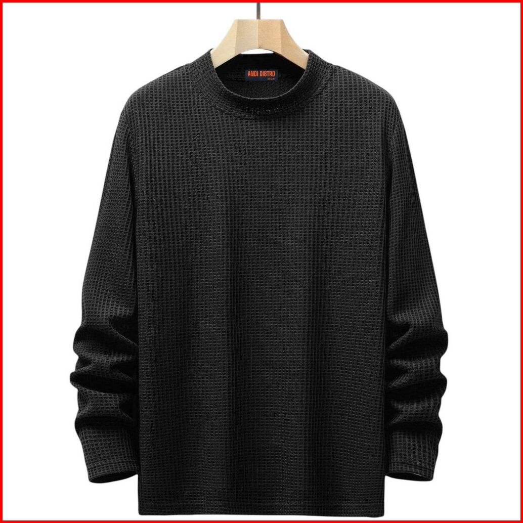 Knit Waffle Premium Kaos Oblong Krah Timggi 3cm Terlaris Kaos Oblong Pria Lengan Panjang