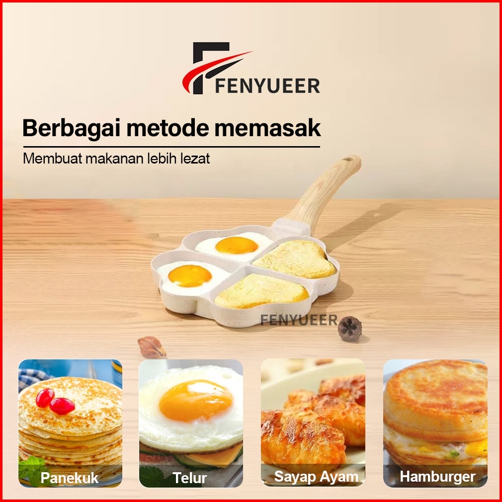 Fenyueer Fry Pan Wajan Pembuat Telur Pancake 4 Lubang Anti Lengket Desain Elegan