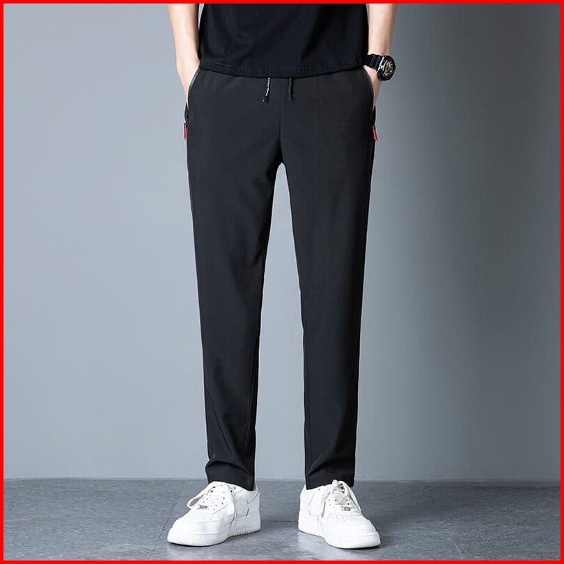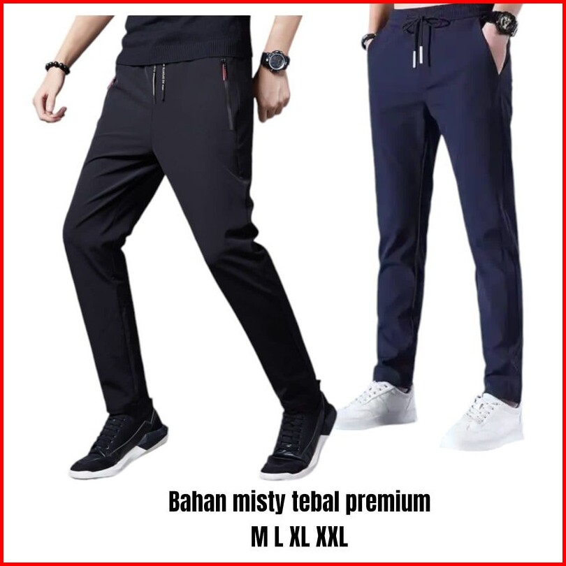 Atlet Sport Celana Running Pria Gym Jogging Aerobic Training Misty Navy Hitam Tebal Elastis
