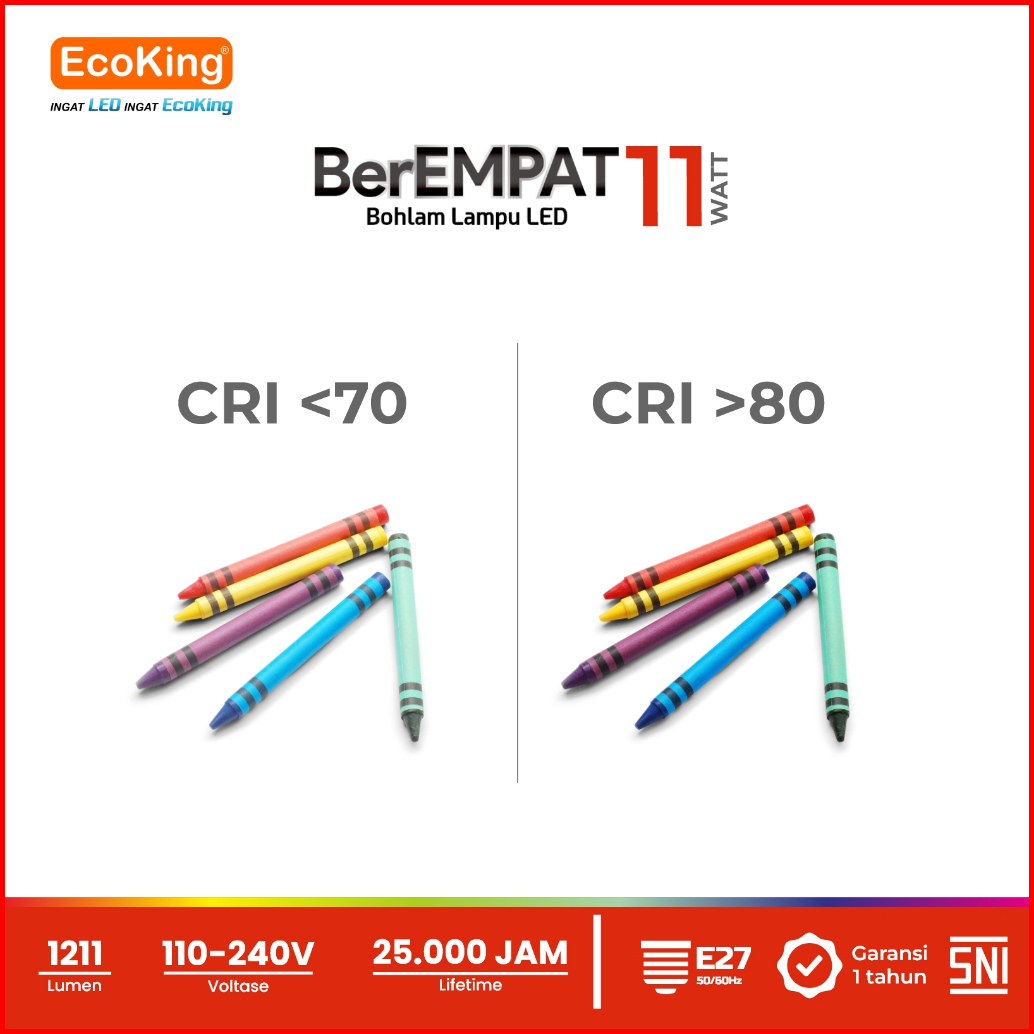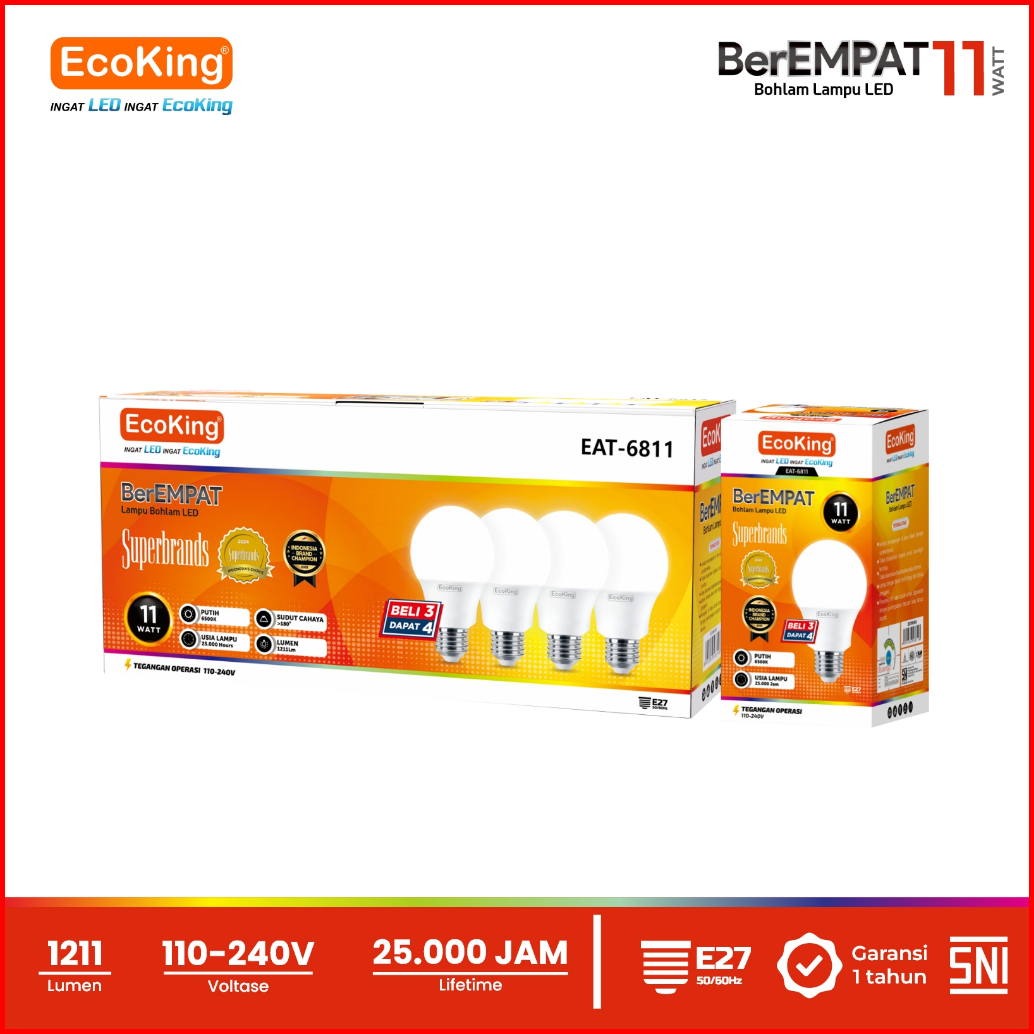 Ecoking Lampu Rumah Bohlam Murah Led Berempat 11w Cahaya Putih Paket Hemat - Beli 3 Dapat 4 Eat6811dl
