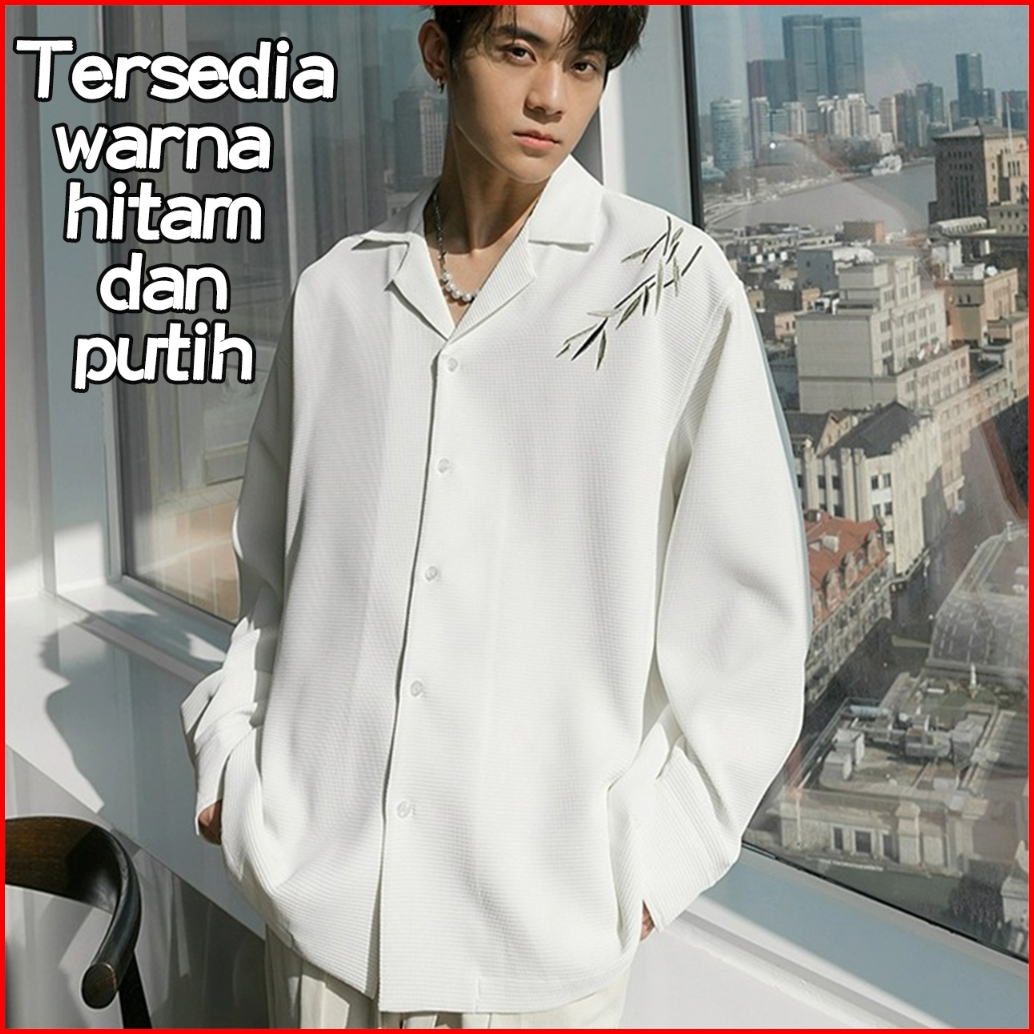 12h Kirim-kemeja Pria 2023 Korean Style Kemeja Pria Lengan Panjang V Neck Baju Kemeja Oversize Pria Kemeja Cowok Polos K