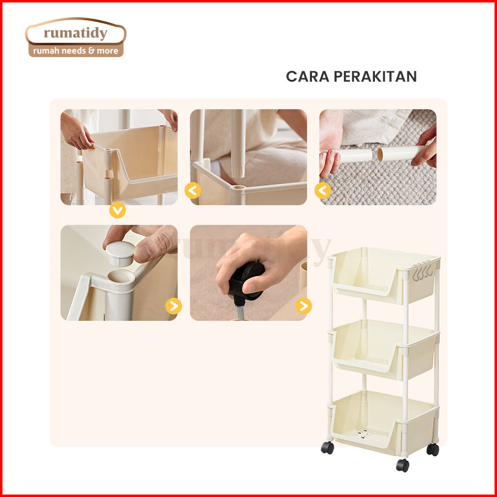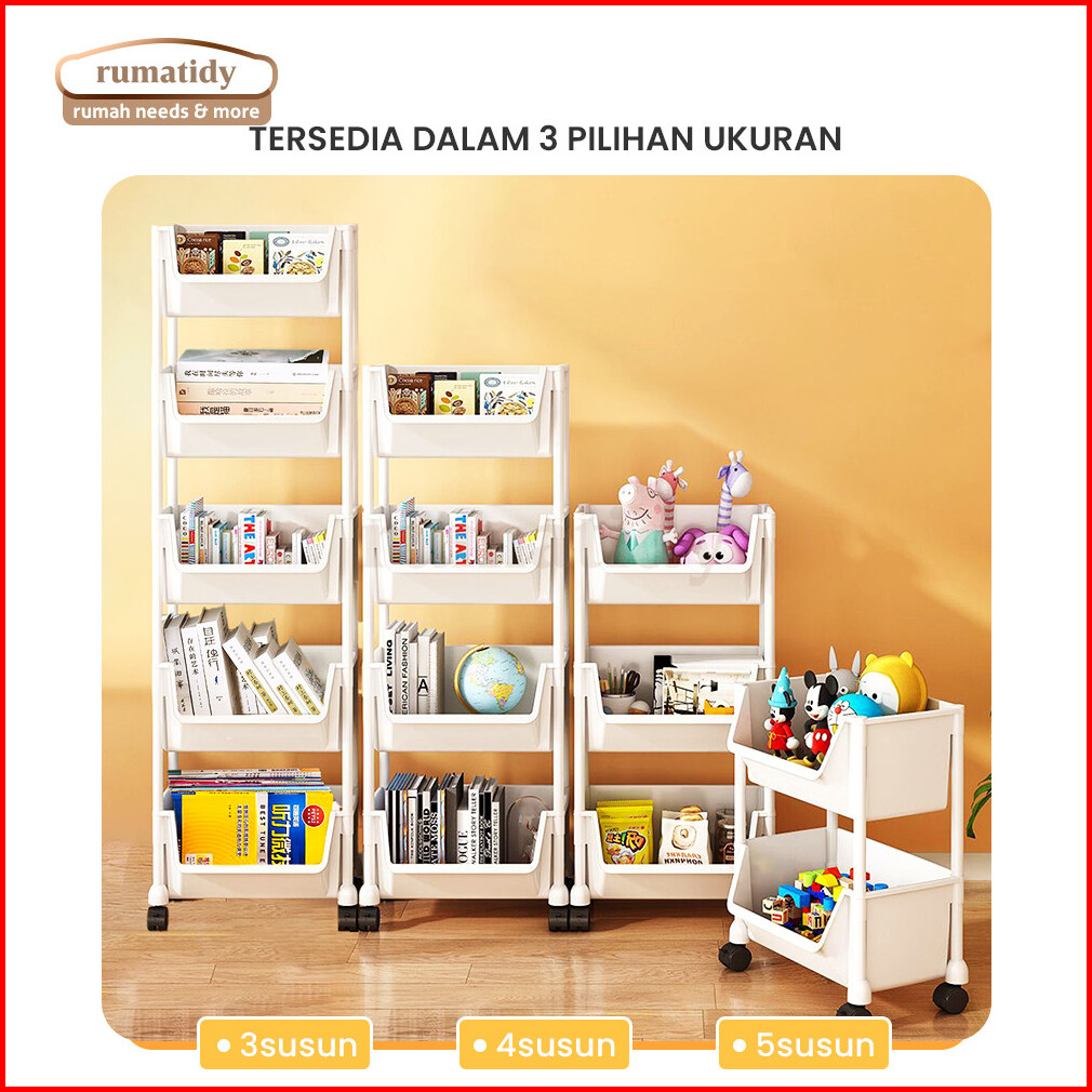 Rumatidy - Rak Susun Serbaguna 3-5 Tingkat Dengan Roda Portable Untuk Buku Mainan Dan Penyimpanan